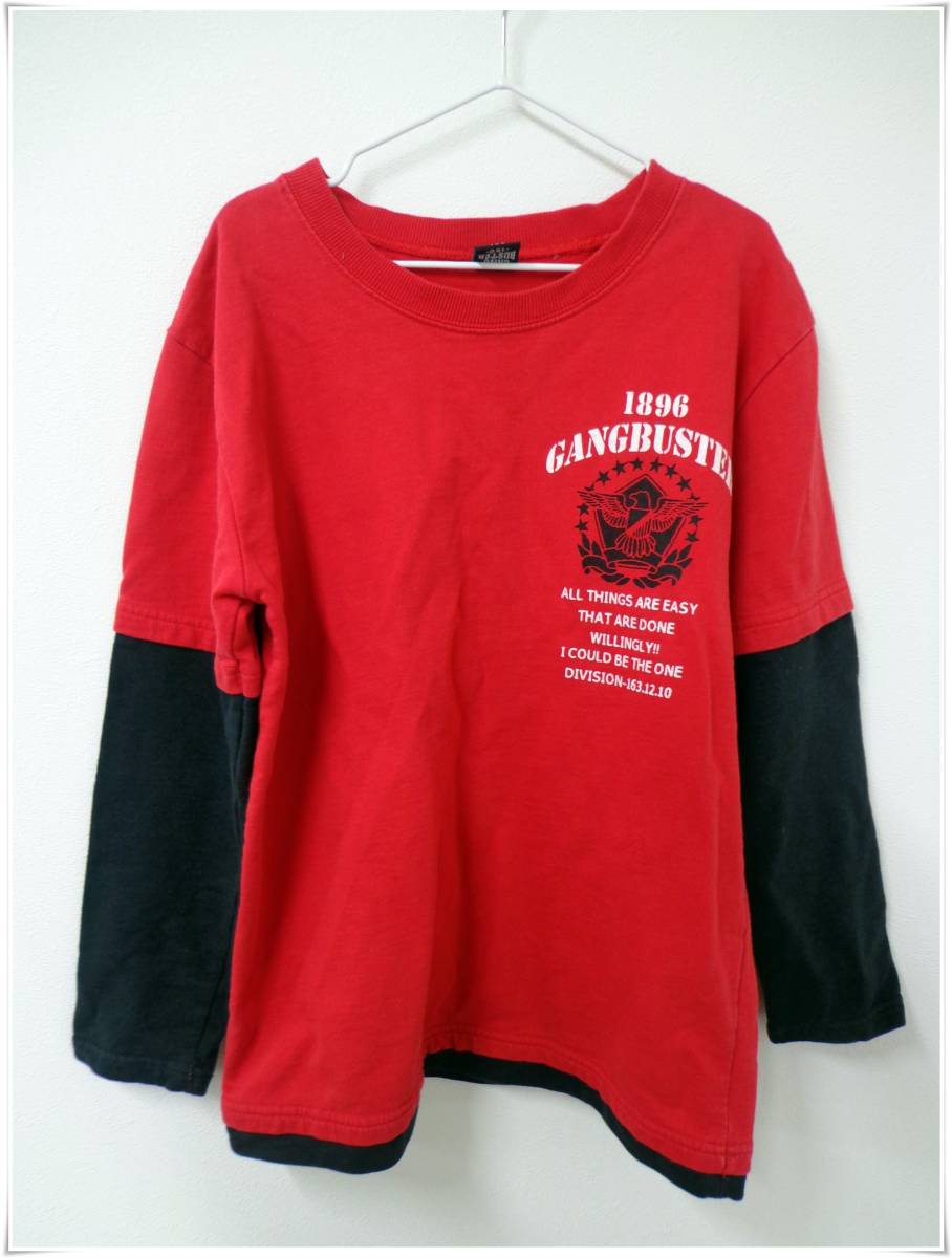 ★212 【送料無料】 GANG BUSTER ギャングバスター ジュニア 男の子 150 長袖 Tシャツ 赤/黒 ロゴプリント フェイクレイヤード 裏毛 通学