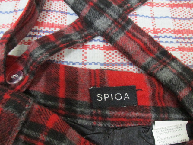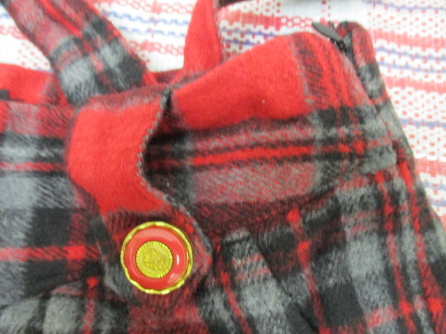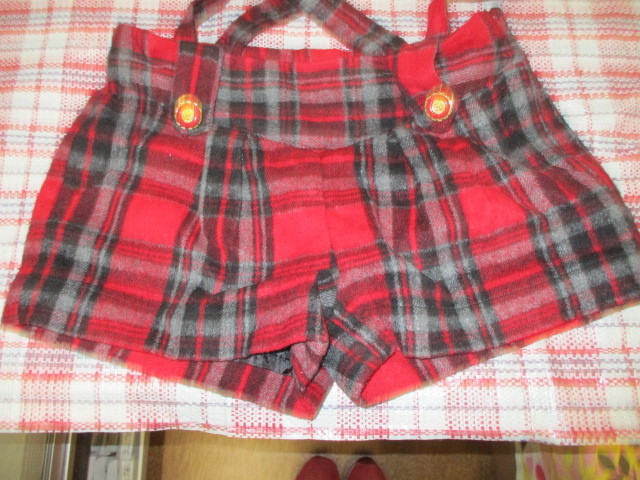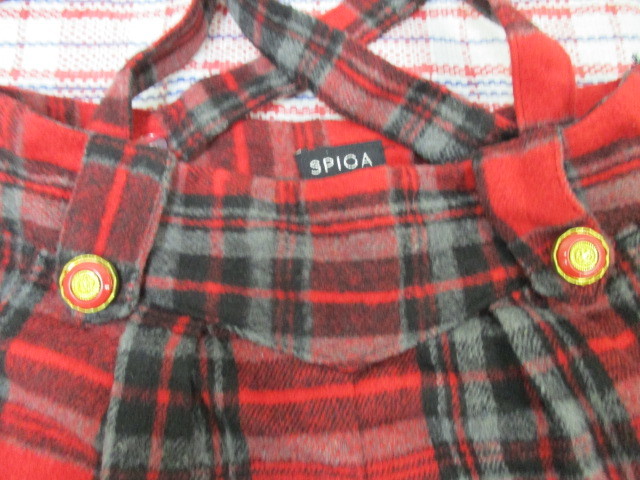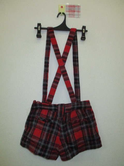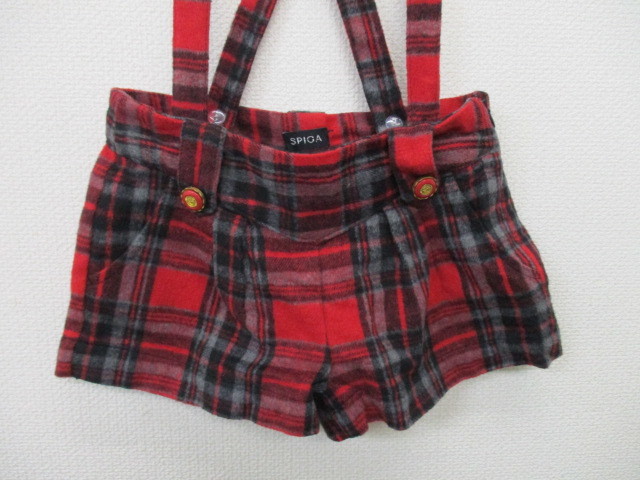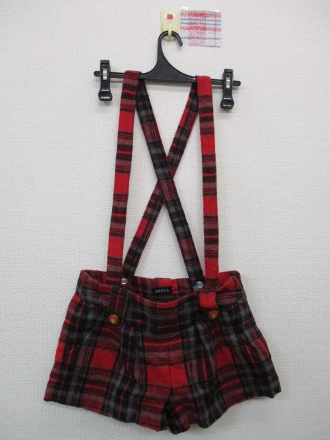 ★SPICA ショートパンツ ミニ丈 サスペンダー付き ネル チェック柄 赤系(S)