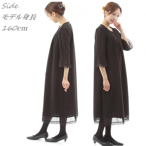 衿のレースが女性らしい可愛いさをプラス。ウエストやお尻のラインを気にせず着られるので幅広い年齢層のお客様に長く着ていただけます。長時間の着用でも疲れないよう締め付け感のないようになっています。上品で清楚な喪服、礼服、ブラックフォーマルです。