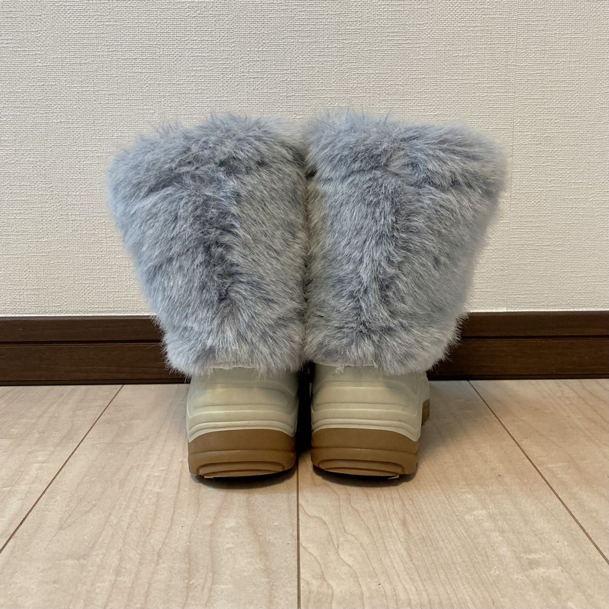 ぱっと見はわかりにくいのですが、ゴム部分が変色しています。元々はアイボリー/グレー系なのですが、黄色みが出ています。ご理解の上ご入札をお願い致します。その他の部分はファーも綺麗で、アウトソール減りも少なく、使用には全く問題ありません。