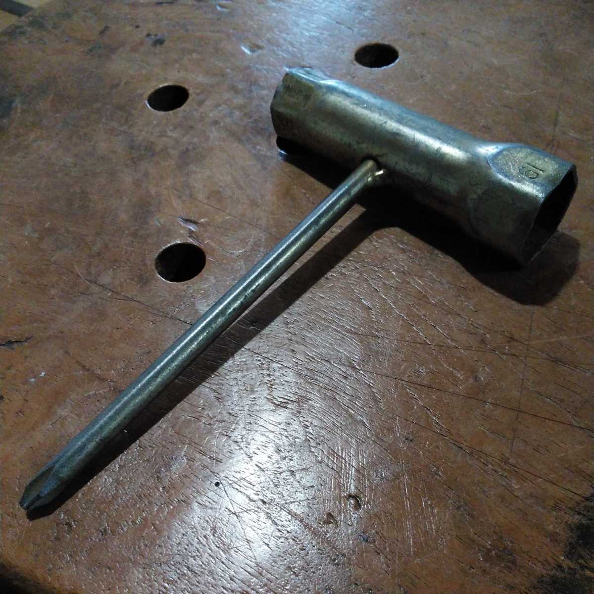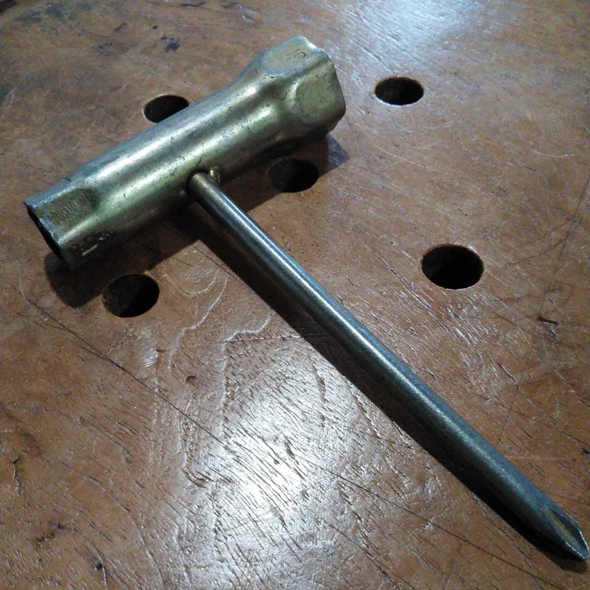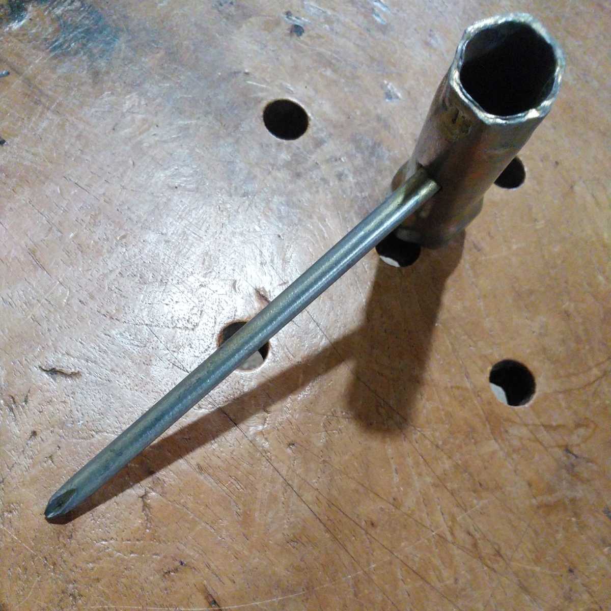 こちらは、メーカー不明のチェーンソー・草払い機の整備用工具です。