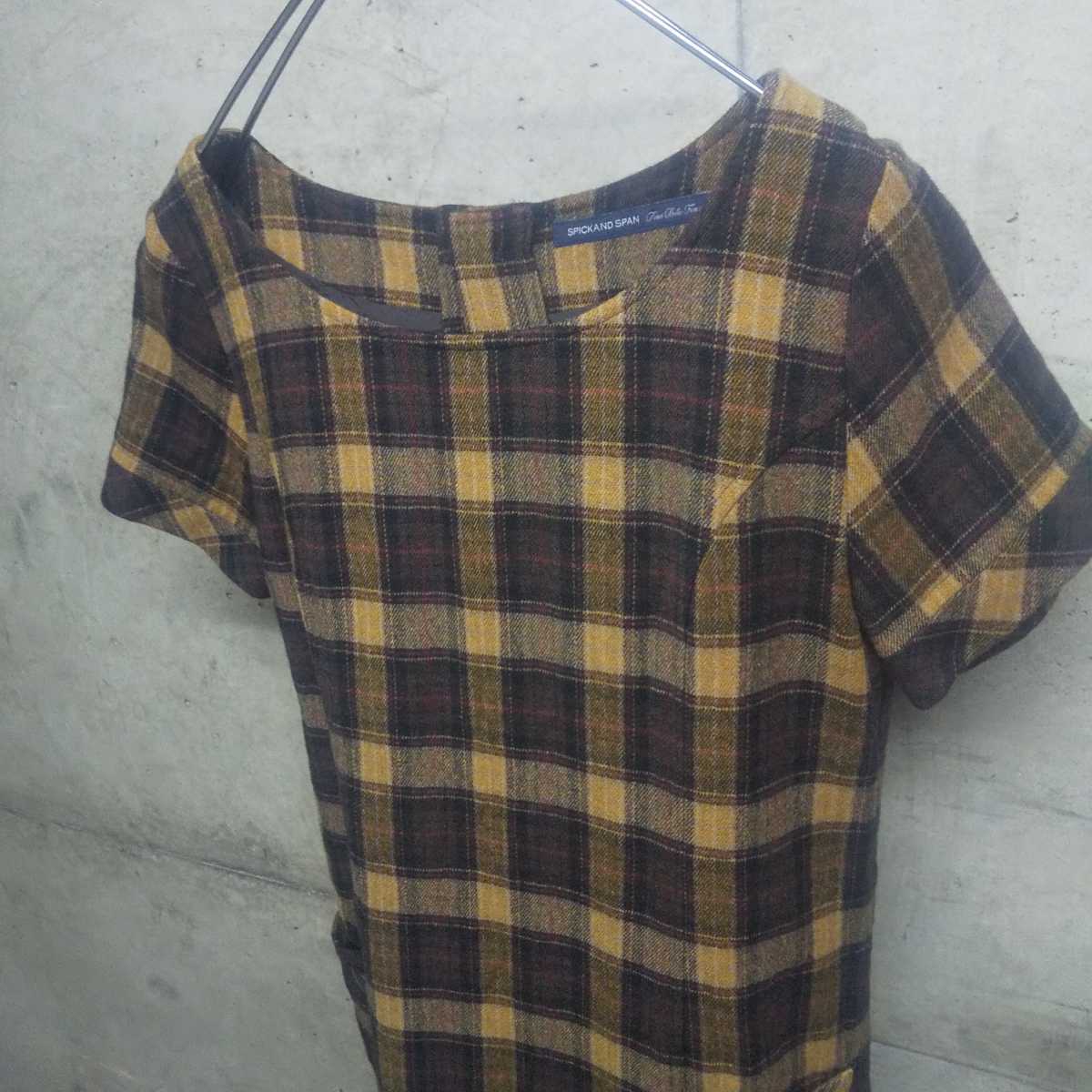 スピックアンドスパン ワンピース 36 spick and span ウール 日本製 チェック柄 チュニック