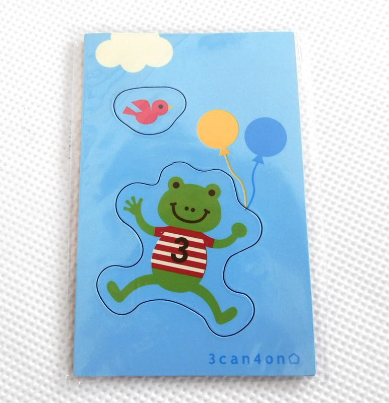 キャラクターのマグネットシートで、カエルのピョニーと小鳥の部分を台紙から切り離せるようになっているようです。