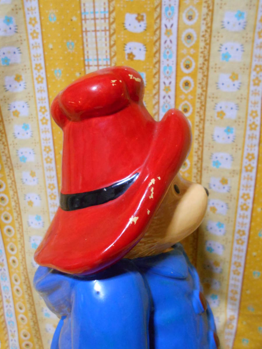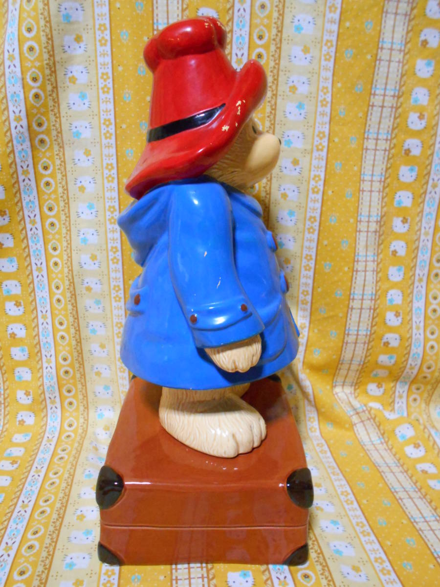 高さ21cmほどのぬいぐるみは新品タグ付きですが、後の2点は新品ではありません。陶器製の貯金箱は高さ32cmほど、オルゴールが鳴るお品でしたが、ネジを回しても鳴りません。とても可愛いパディントンのグッズセットです。