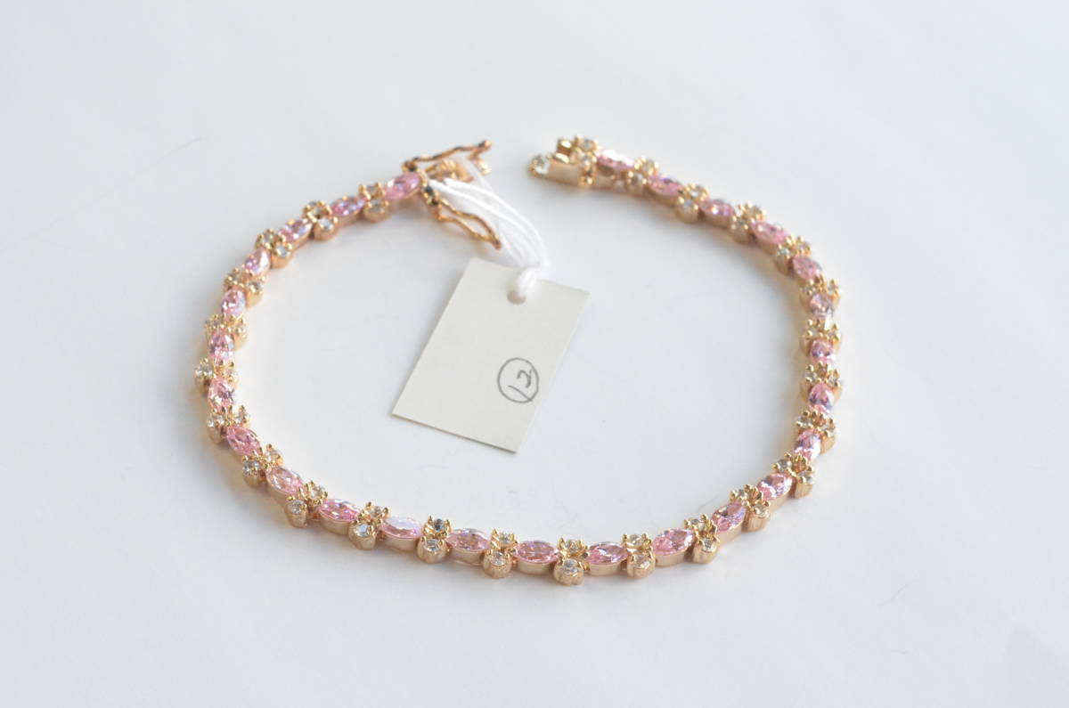 18KGE ブレスレット キュービックジルコニア 合成石 ピンク HSB784 デッドストック