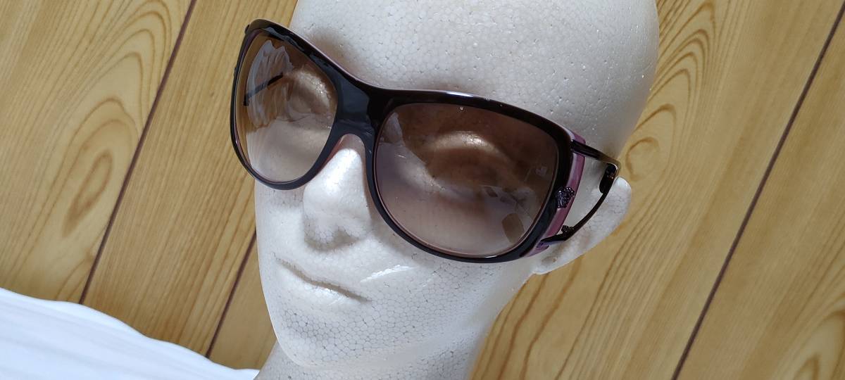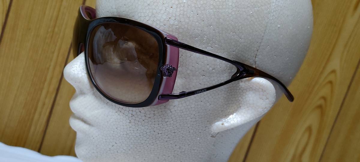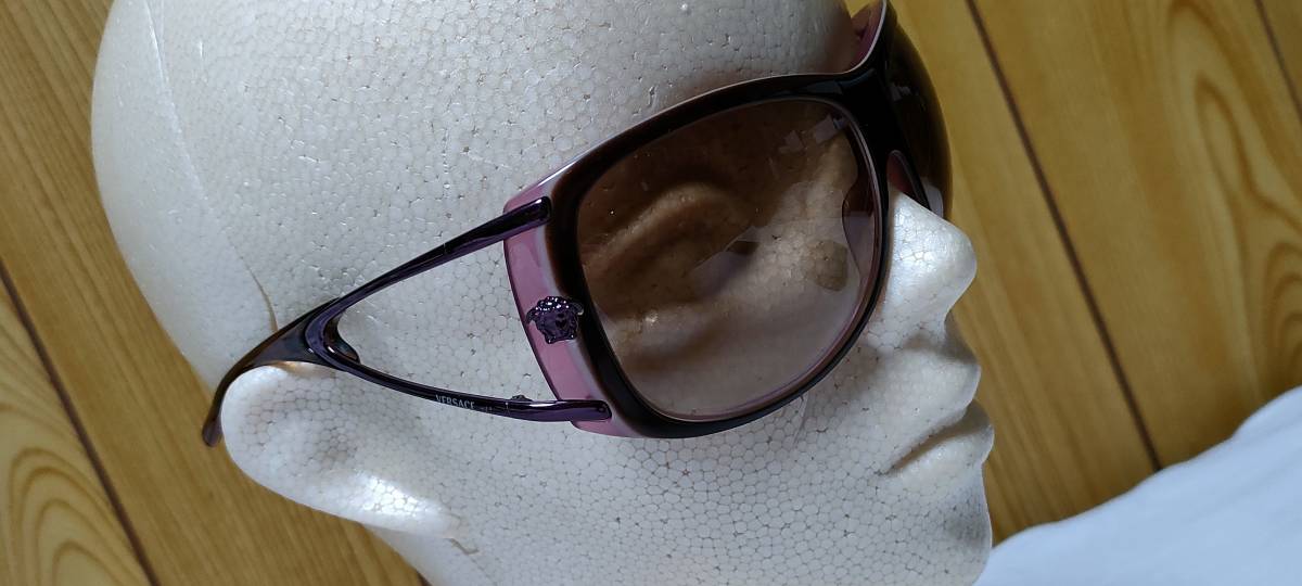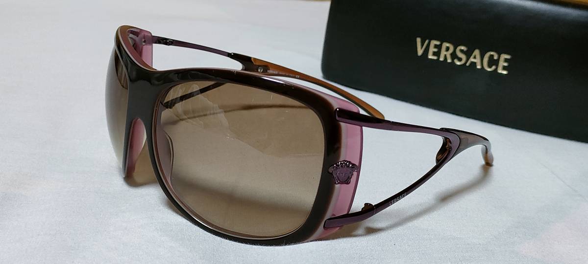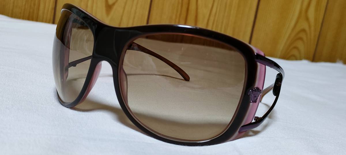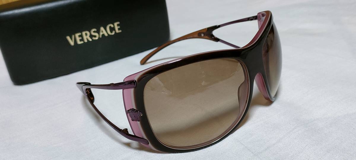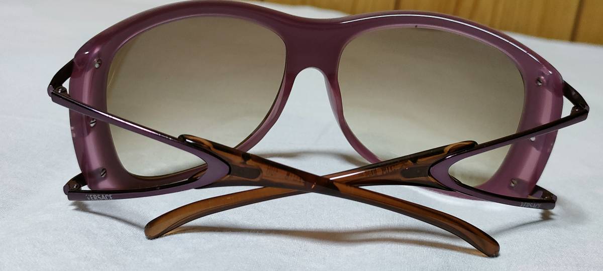正規美 希少 セレブ ヴェルサーチVERSACE メデューサロゴ文字 コンビフレームサングラス 紫×茶 グラマラスビッグレンズ 付属有○男女兼用