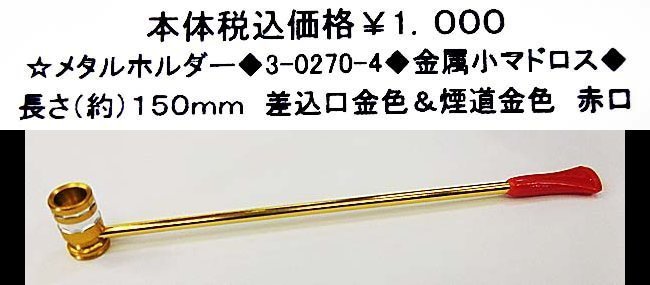 現物を写真撮影、お手元にこの写真の品が届きます。金属マドロス150ミリ!!ちょっと小粋にホルダーで癒しのひと時を・・・!!※1.この商品単独のラッピングは行いません!!ビンゴが出品している全ての商品は、店頭販売、他オークション販売、ショッピング販売等重複し販売しております。時間差で売れ切れや、出荷点検検等で傷が付いていたり破損している事もあります。従いまして、お買い上げ頂きましても出荷出来ない場合も有りますので、予めご了承の上お買い求め下さい。尚、同じ型の商品が取り寄せ可能の場合は、改めてその旨お伝え致し、ご了承の際は数日お待ち頂く事になります。ご注文商品は他商品と同梱配送出来ますので、何個ご注文されても送料は1口分です。1.レターパック発送 ¥600 日時指定不可。(郵便レターパック)。2.宅配便発送税込み ¥880日時指定必須(沖縄/離島は別途価格)。必ず 受取日時 をご指定下さい。(例:15日 18~20 時必着)再配達防止の為。 (業者は当社にお任せ)。3.代金引換発送引手数料税込み ¥1、210 日時指定必須(沖縄/離島は別途価格)。 必ず 受取日時 をご指定下さい。(例:15日 18~20 時必着)再配達防止の為。(業者は当社にお任せ)。