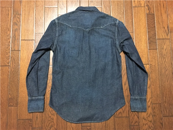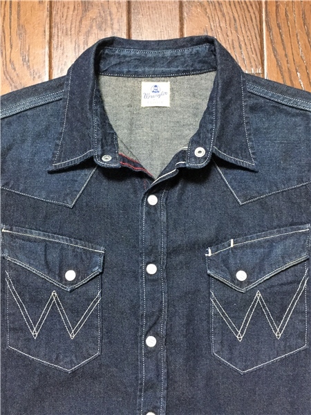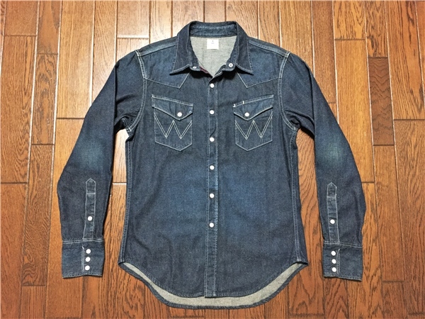 ラングラー WRANGLER エディフィス EDIFICE ビンテージ スタイル デニムシャツ 濃紺 S ウエスタン 斜めポケット Wボタン