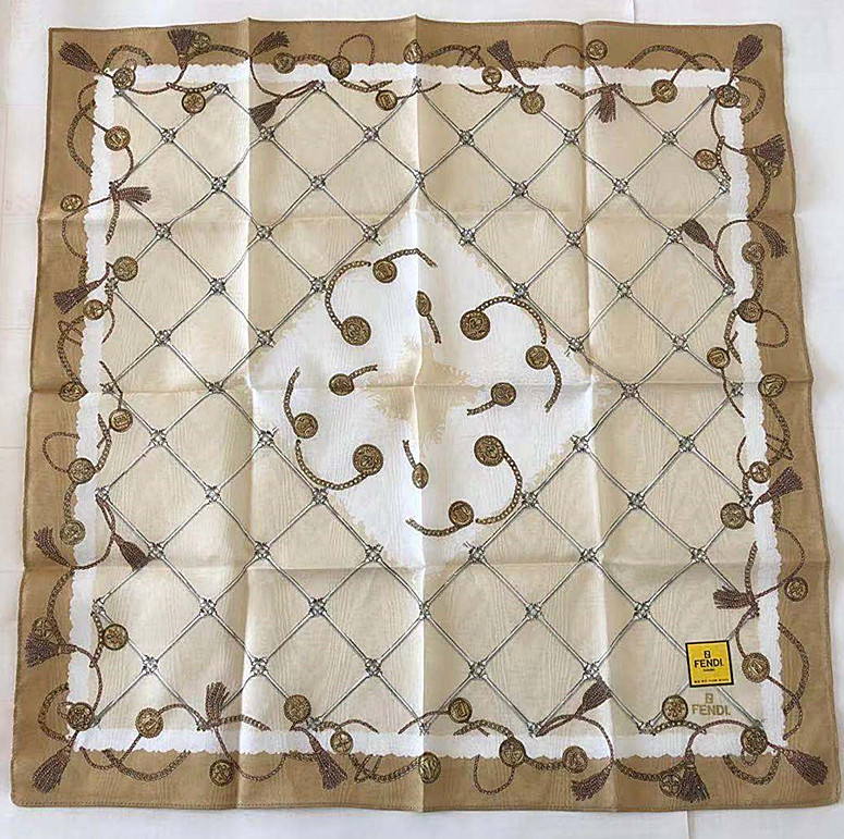 フェンディFENDI超稀少大人気◆地模様織り柄ハンカチミニスカーフ★膝掛けⅡ