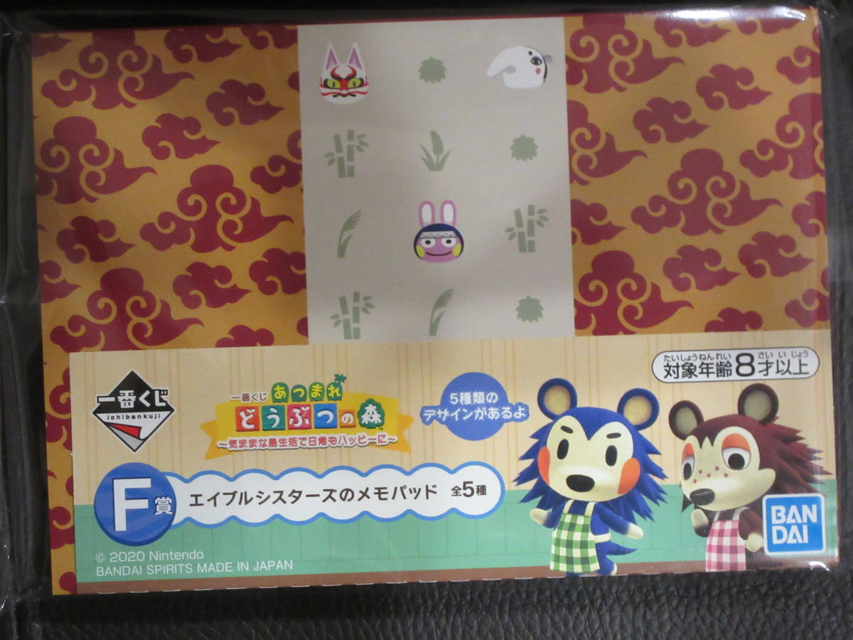 ◆「一番くじ あつまれどうぶつの森 気ままな島生活で日常もハッピーに F賞 エイブルシスターズのメモパッド」です。