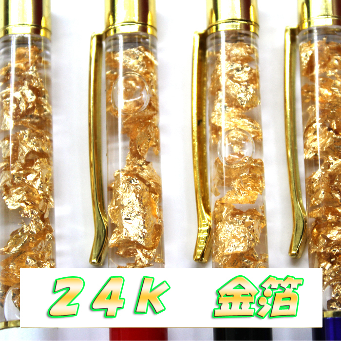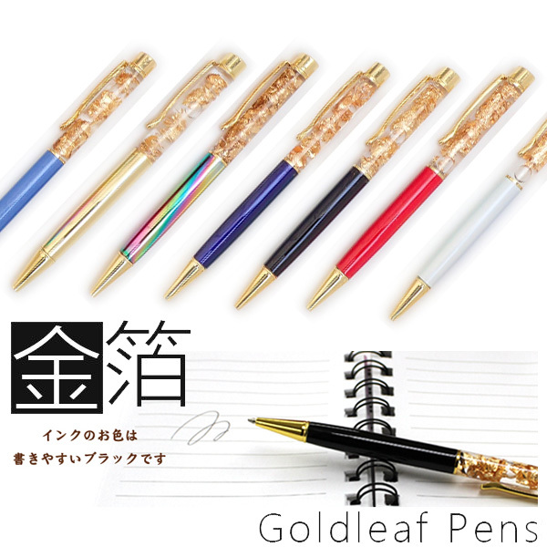 縁起の良い金箔をたっぷり閉じ込めた金運アップボールペン。