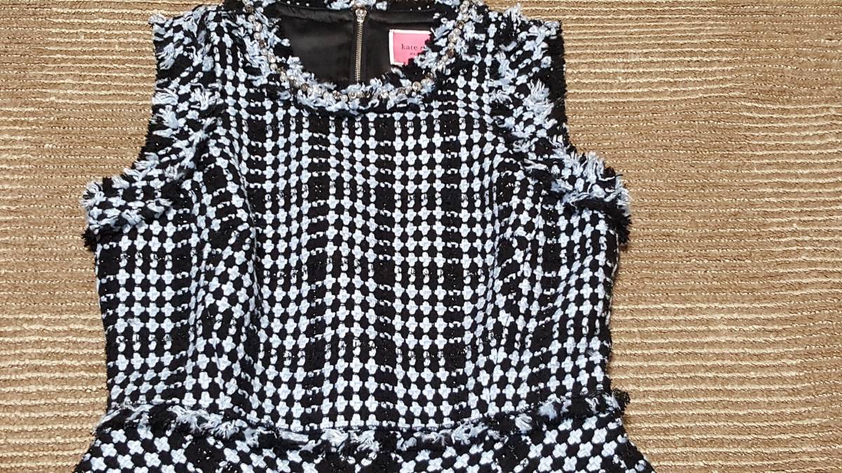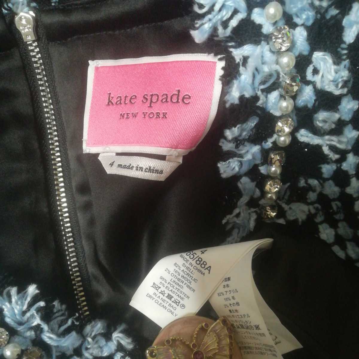新品送料無料 US4号/165/88A JP9号前後Kate Spade Newyork ケイトスペード ニューヨーク花柄チェック柄ツイードワンピース襟元ジュエル