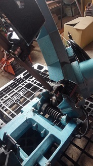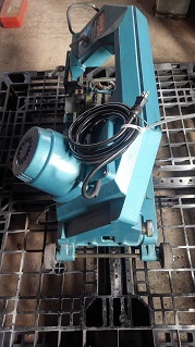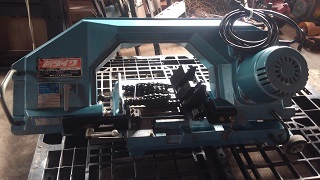 新ダイワ工業のバンドソーになります。母材を置いてチェーンをかけてハンドルを回すとチェーンが母材を引っ張って固定します。あとはバーをおろせば簡単に母材がきれます。ダイヤルを回すだけで母材の大きさにあわせてきれますので便利です。また鋸刃の脱着レバーもありますので刃の交換も簡単にできます。古い型になりますが昔ながらの年代のかなり頑丈な金属の作りになってますので本物のメイドインジャパンが好きな方、同じものを使っている方やこの年代が好きな方、これから大切に長く使ってくださる方の入札をお願いいたします。100V仕様でそこそこの大きさなのでプロからDIYの趣味で使われる方まで幅広く対応してます機種になりますのでこの一台あれば重宝すると思いますのでこの機会に必ずゲットしてください。
