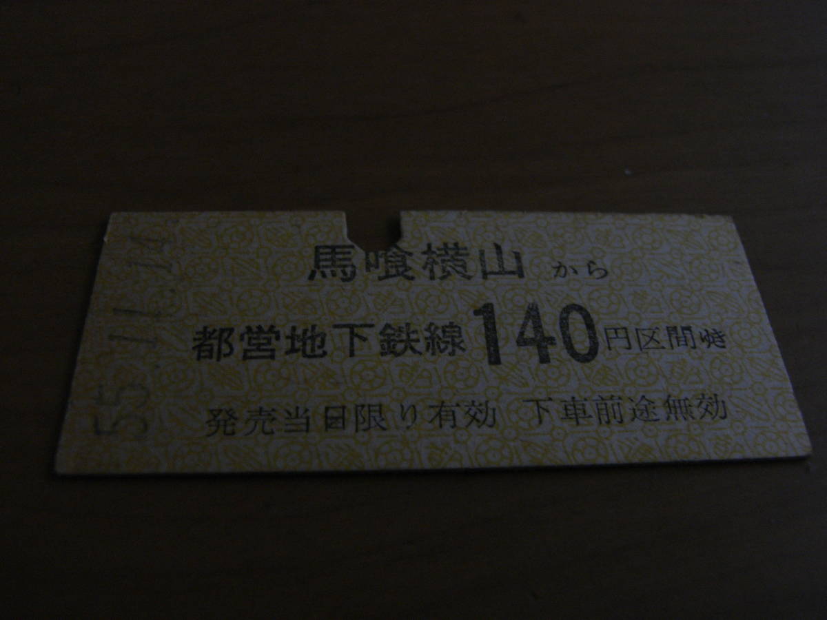 都営地下鉄 馬喰横山から都営地下鉄線140円区間ゆき 昭和55年 馬喰横山駅発行