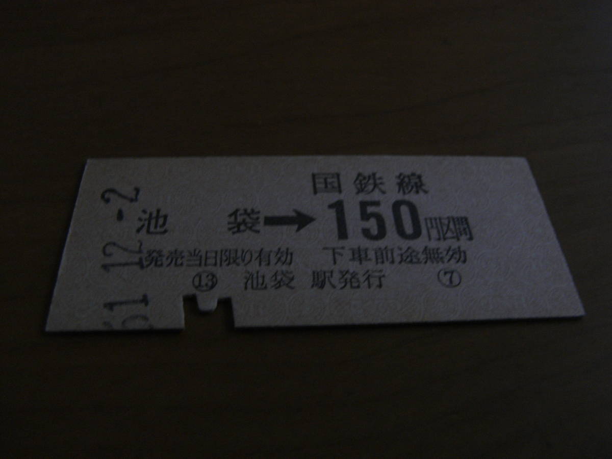 山手線 池袋→国鉄線150円区間 昭和61年12月2日 池袋駅発行 国鉄
