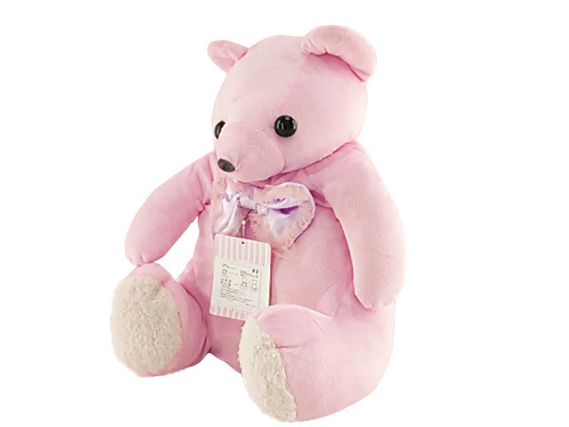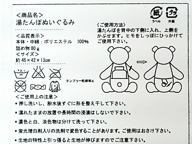 湯たんぽ入れがついたピンクのクマのぬいぐるみです。