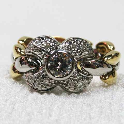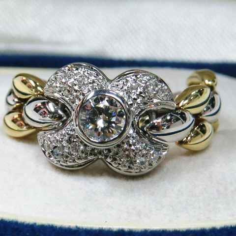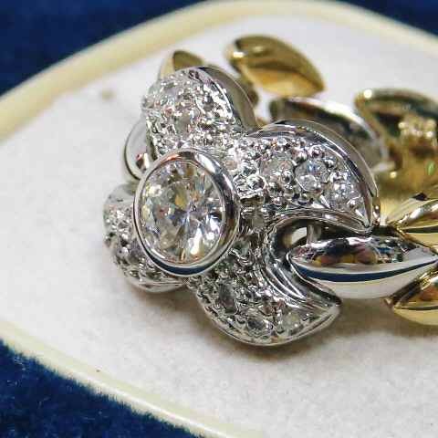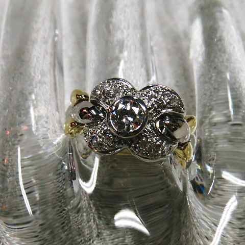 【値下げ交渉は質問欄より】ダイヤ☆花びらモチーフのブレスリング☆可愛い♪K18&PT900コンビネーション指輪☆逸品!!