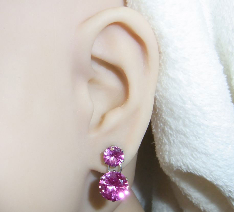 ★大粒12CT ゆれる きらめき 高級 合成ピンクサファイア ピアス ステンレス製★ | |||