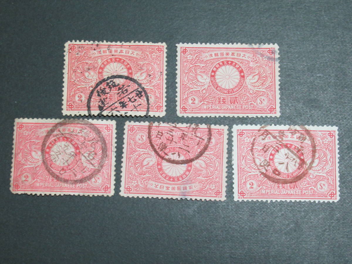 《記念切手・他》明治銀婚③・2銭x5枚・使用済一部可読印 《カタログ価 5000円》