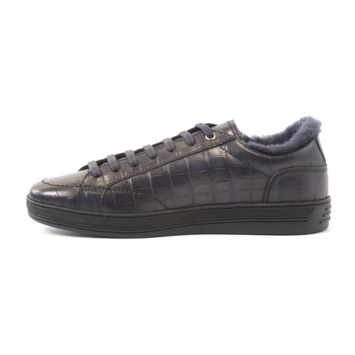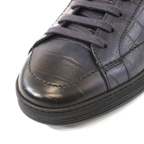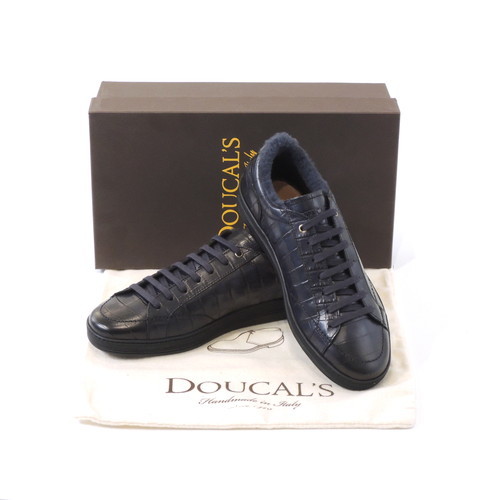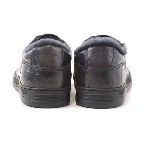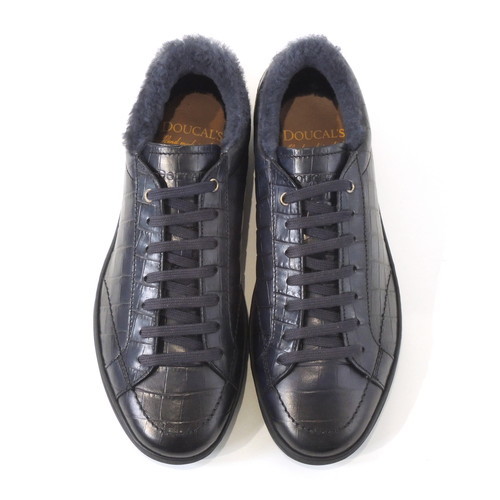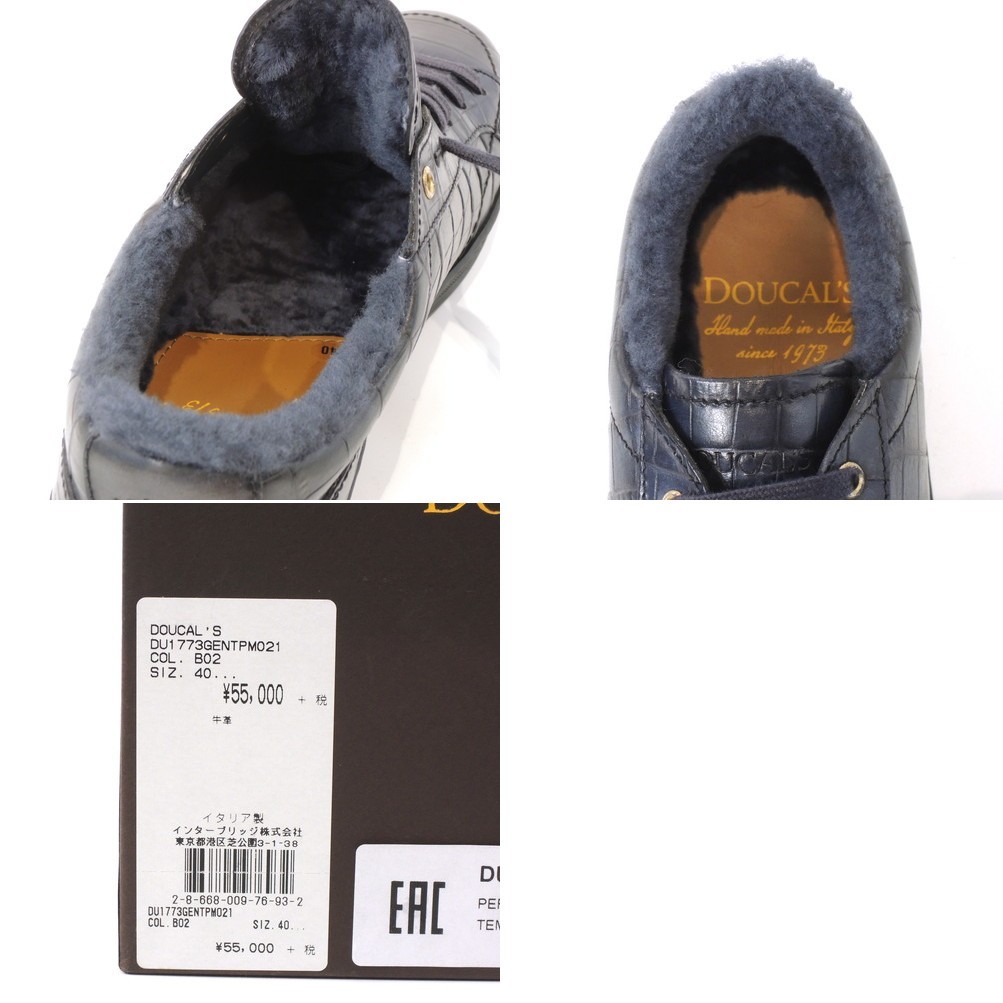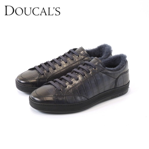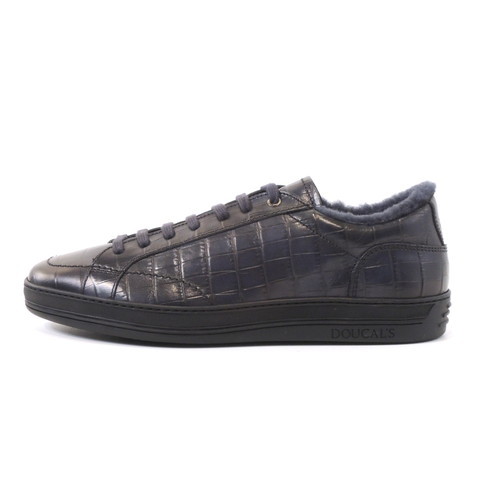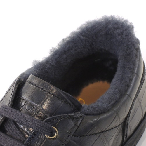 ◇商品説明 DOUCAL'Sのクロコダイル型押しカーフレザー ムートンスニーカーです。 クロコダイル型押しカーフレザーとムートンファーの組み合わせは艶やかで色気がありながらも上品さも兼ね備えた”ラグジュアリーな大人のスニーカー”に仕上がっています。 アッパーはキメの細かいしっとりとした肌触りの上質なカーフレザー。いやらしさのある光沢は無く、モダンで高級感あふれる雰囲気です。内側にはつま先までムートンファーが配され非常に暖かで保温性が高く、真冬でも快適に着用していただけます。 すっきりとしたフォルムとイタリアらしいデザインに機能性もあり、スポーツブランドのスニーカーとはひと味違った”大人のラグジュアリーな一足”に仕上がっています。 ※インナーのファーの厚みがある分、タイトなサイズ感になっています。ハーフサイズ大き目でお選びいただくことをお勧めします。 サイズ詳細 IT 40(日本サイズ 約25cm) アウトソール全長 27.5cm ソール最大幅 10.2cm ヒール高 2.5cm ※平置きで計測しています。個体差がある場合もありますので多少の誤差はご了承ください。 天然の皮革を使用していますので、若干の色ムラや擦れ、軽微な傷、筋、斑点などある場合がございますが、皮革本来の自然なもので不良品ではなく天然の特性となります。 ご理解のほど、よろしくお願いいたします。 | ||||