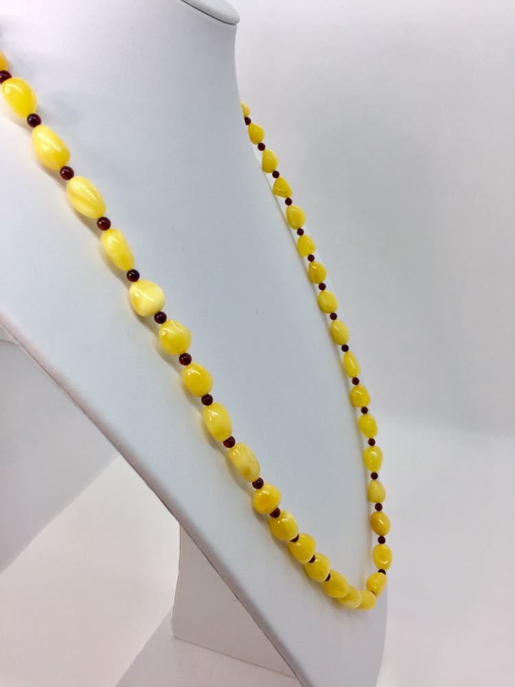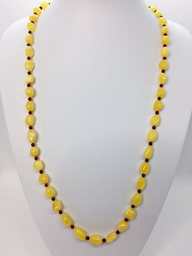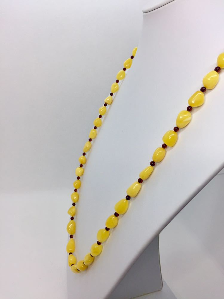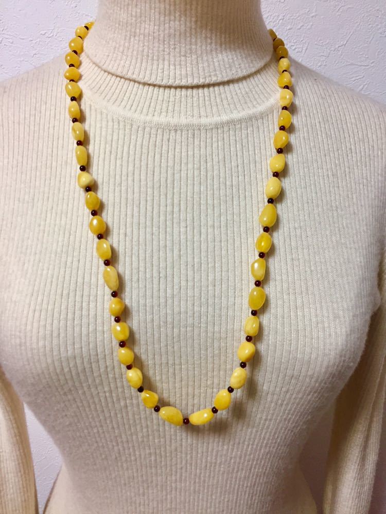 新品リトアニア産ミルキー琥珀のロングネックレスです。