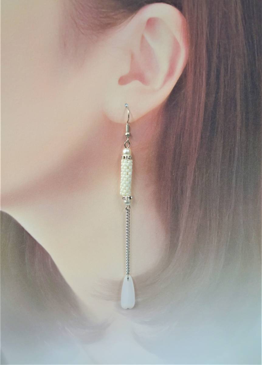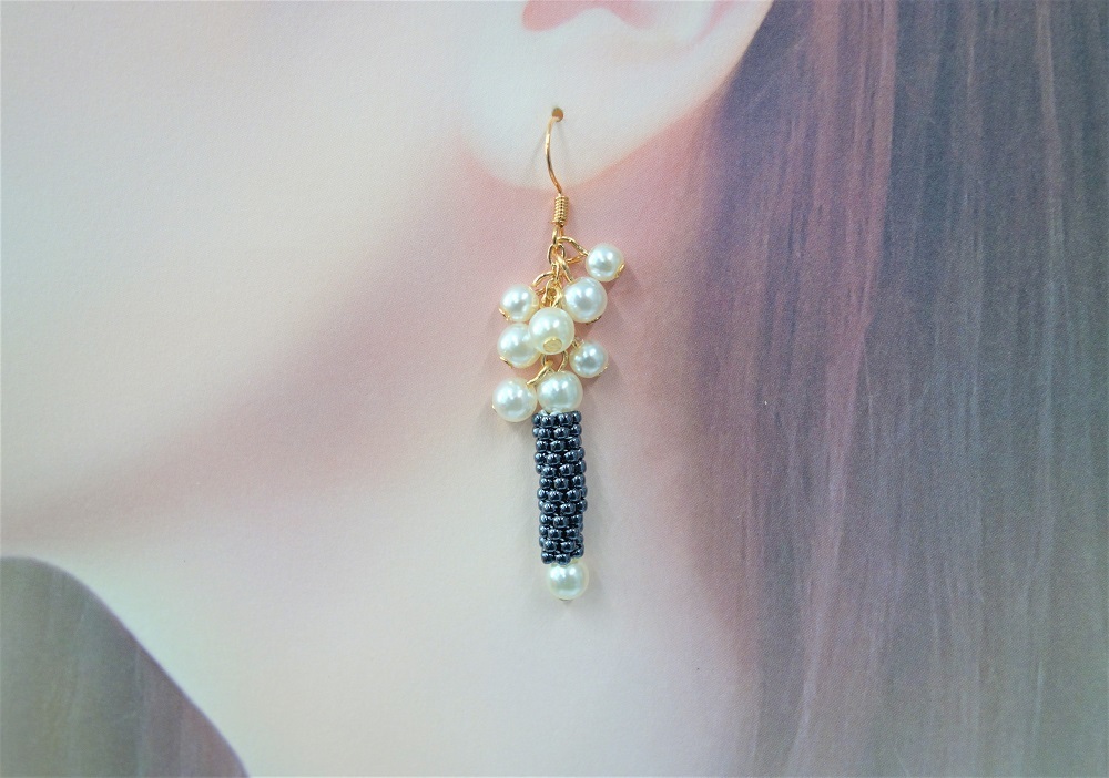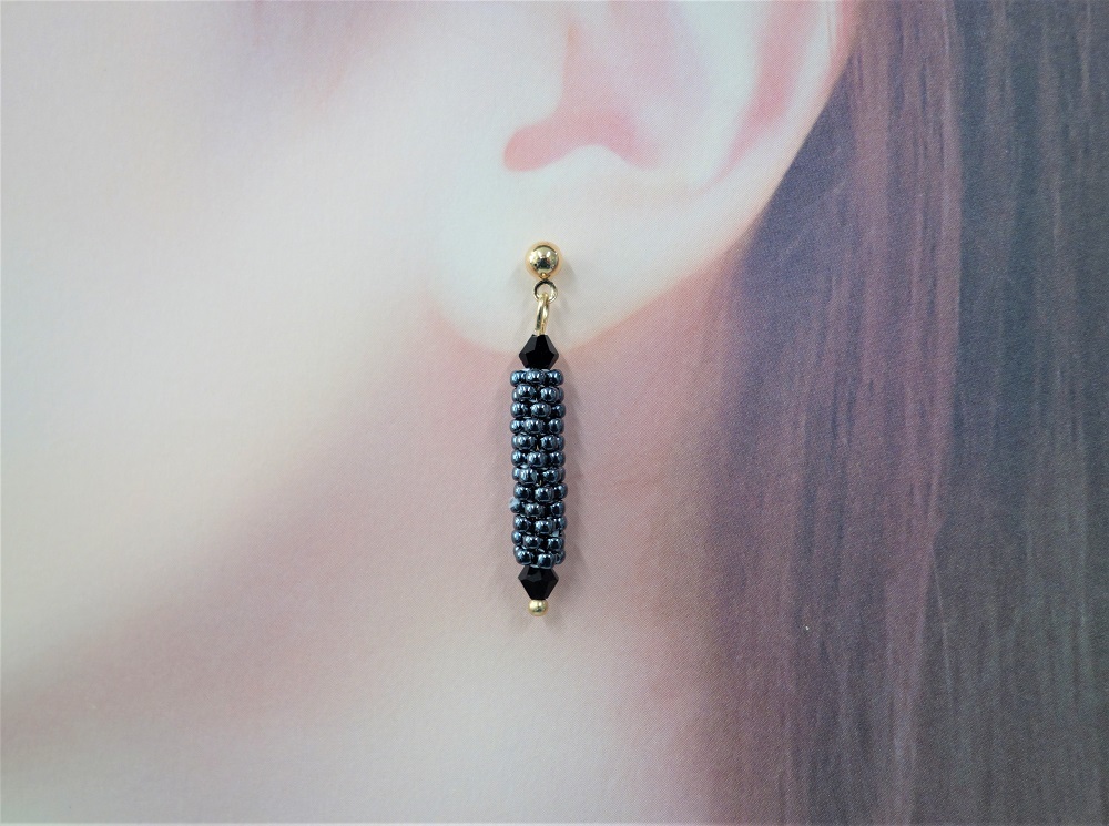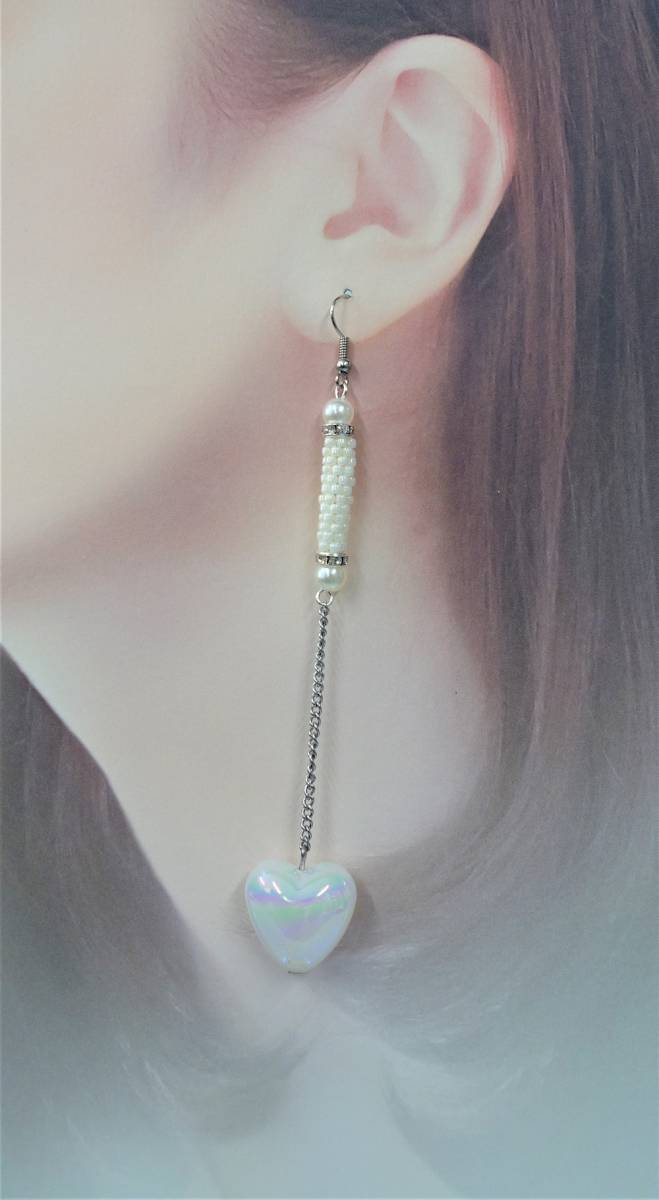 ◎主な使用材料:TOHOビーズ、プラスチック製パール調ビーズ、A級ガラス製花びらパーツ、アクリル製ハートパーツ、合金製ピアス金具、MIYUKIビーズ用糸などを使用しています。