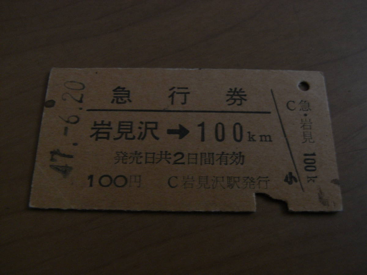 急行券 岩見沢→100km 昭和47年6月20日 岩見沢駅発行
