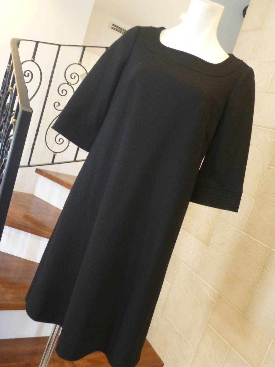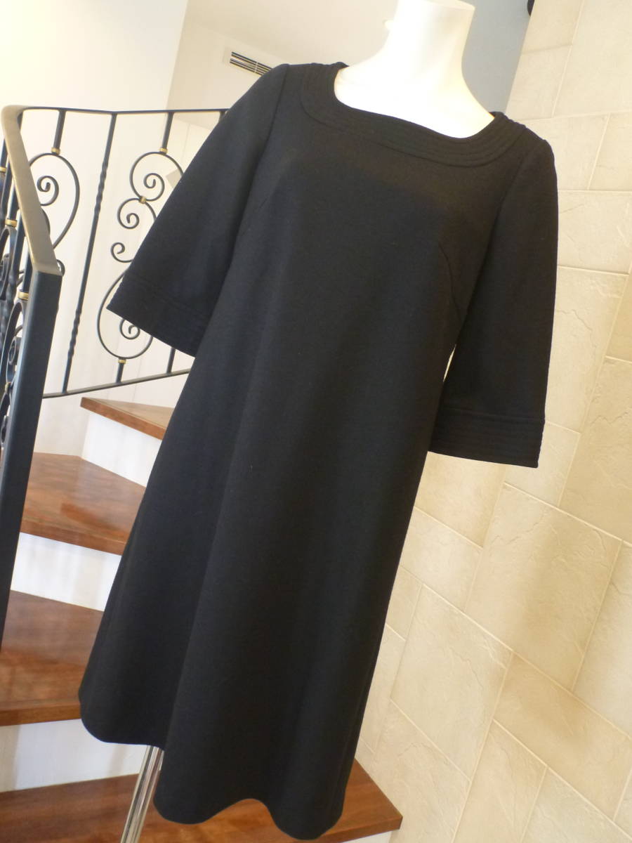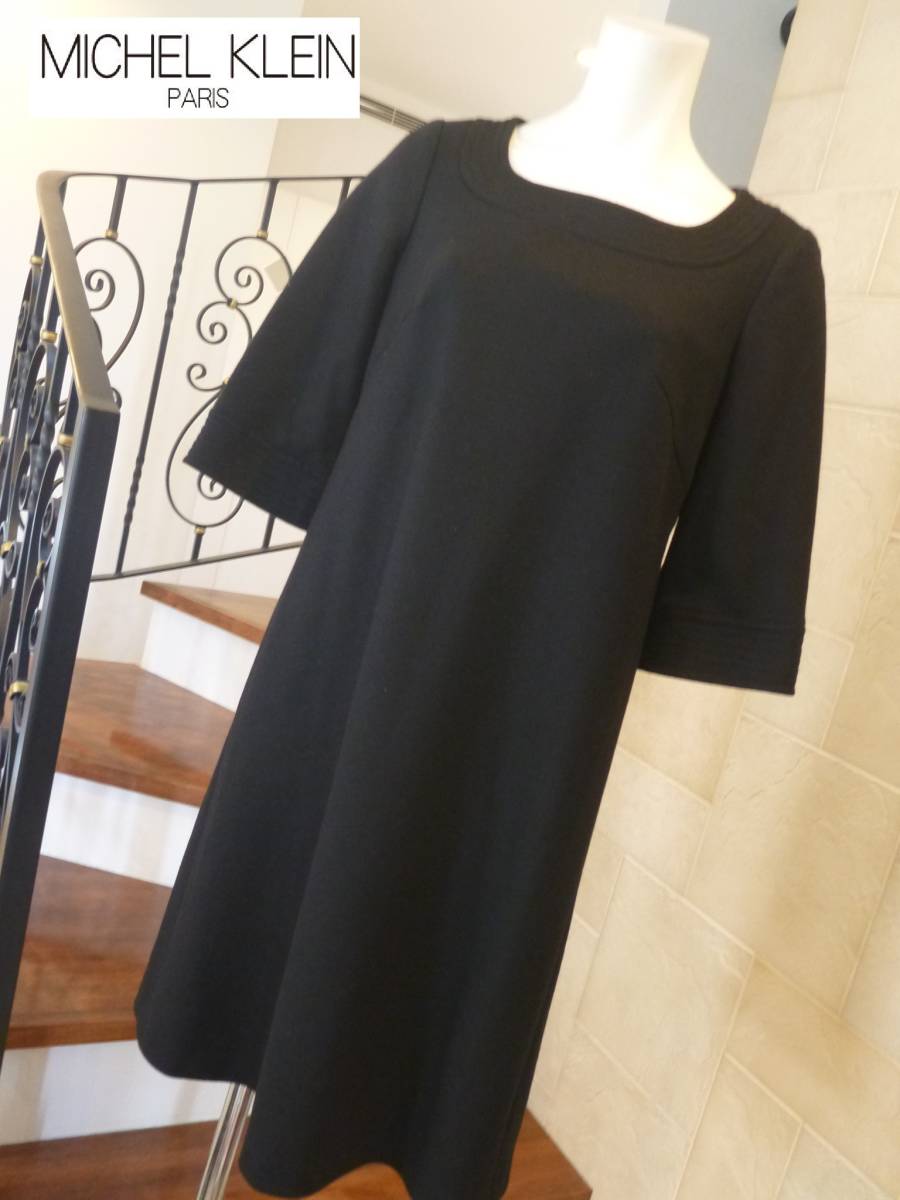 3.5万 超美品 MICHEL KLEIN ミッシェルクラン ★黒 ブラック ウール  ワンピース 38 M相当