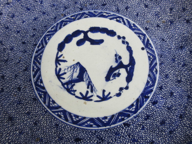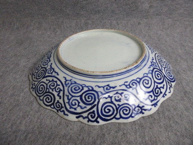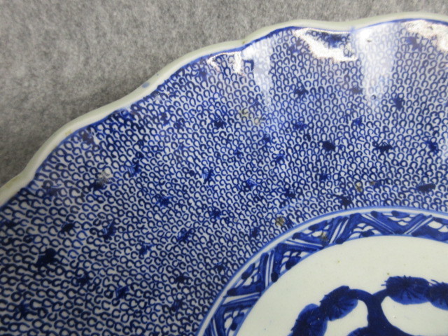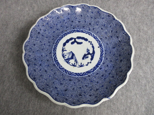 【政】30222 伊万里染付みじんこ手大皿 有田 唐津 江波