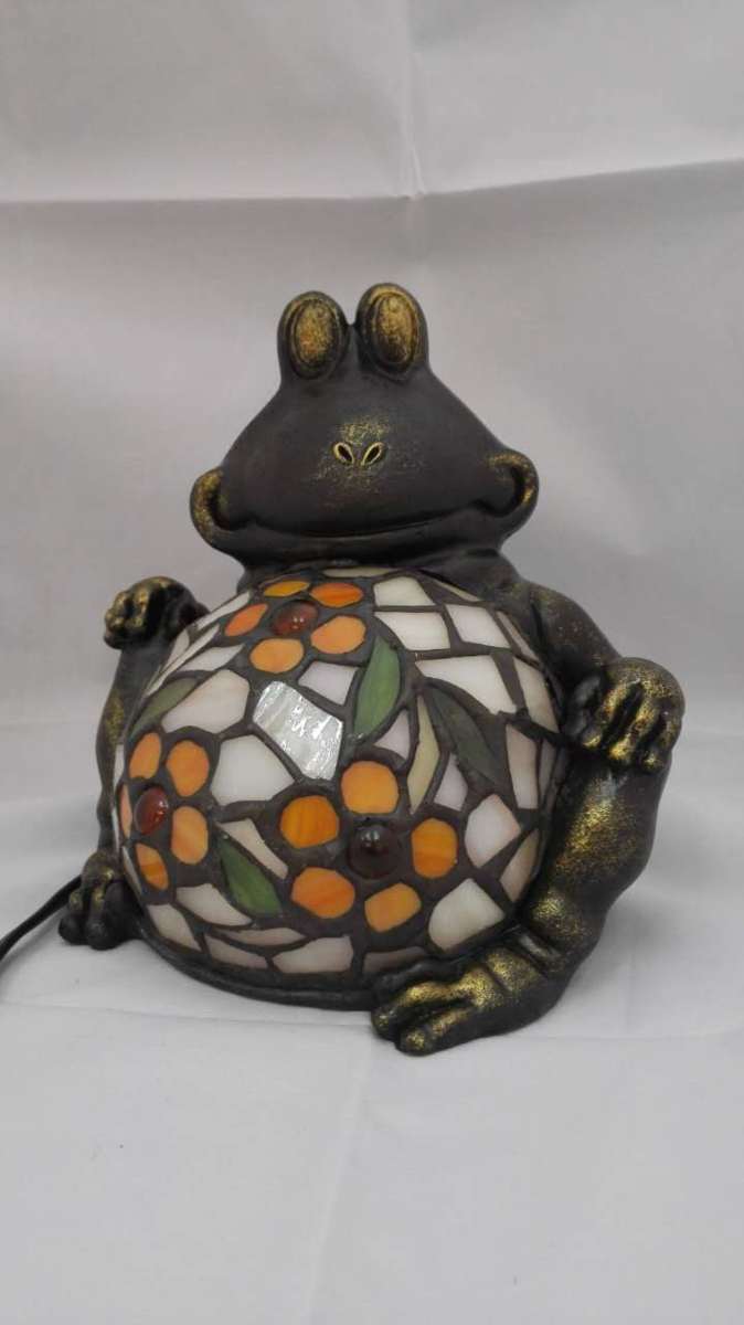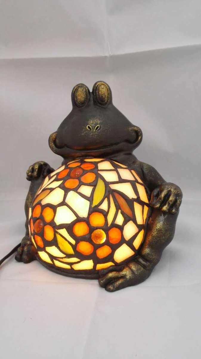 【ティファニー調ステンドグラスランプ】カエルモチーフ 卓上 照明 インテリア お部屋をお洒落に【大人気・美品】