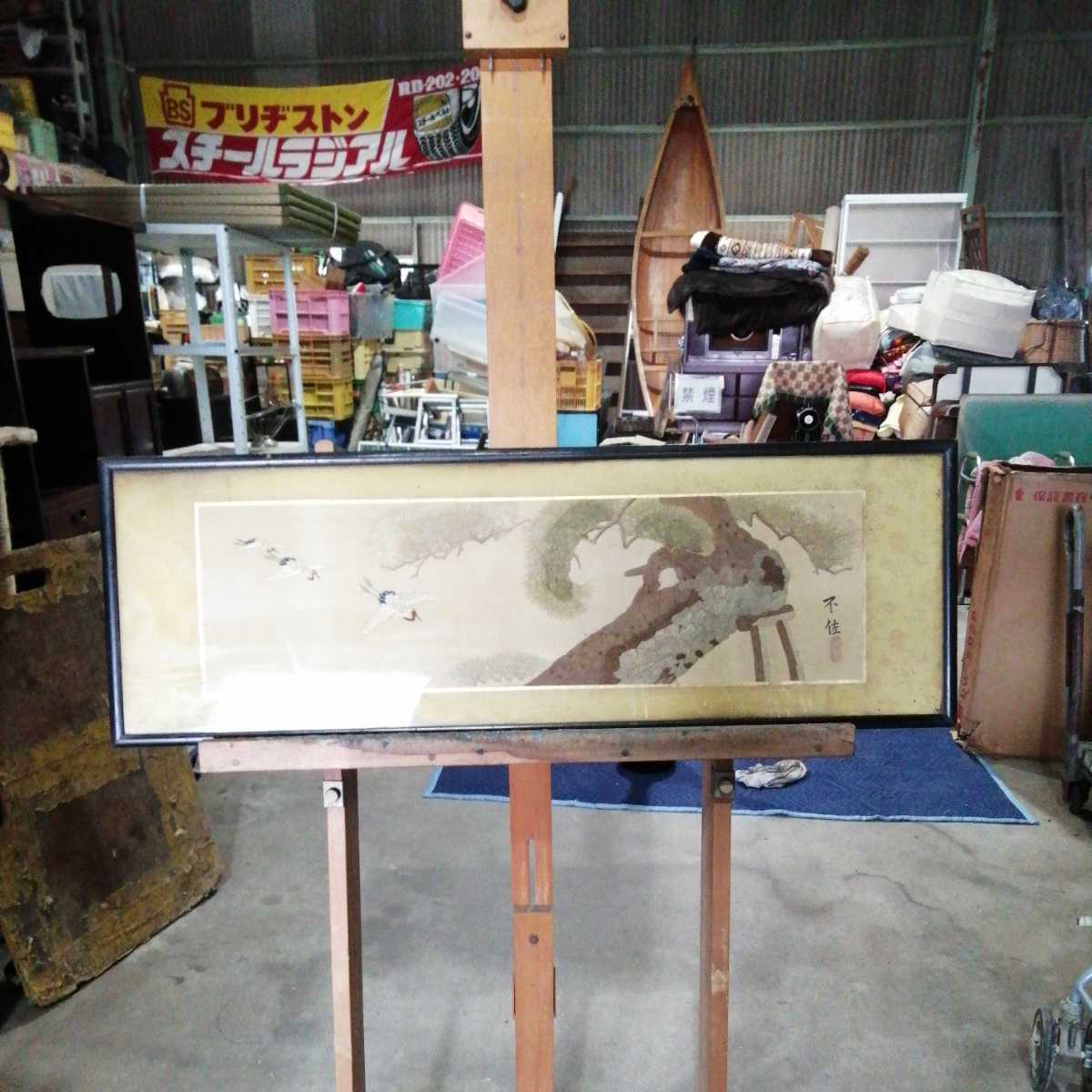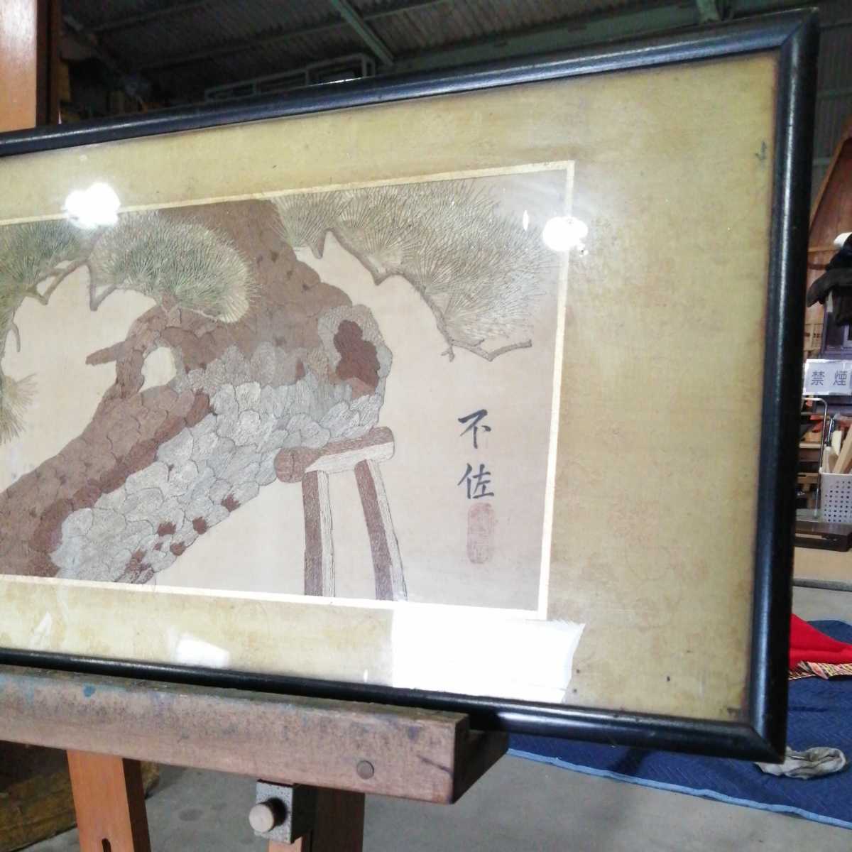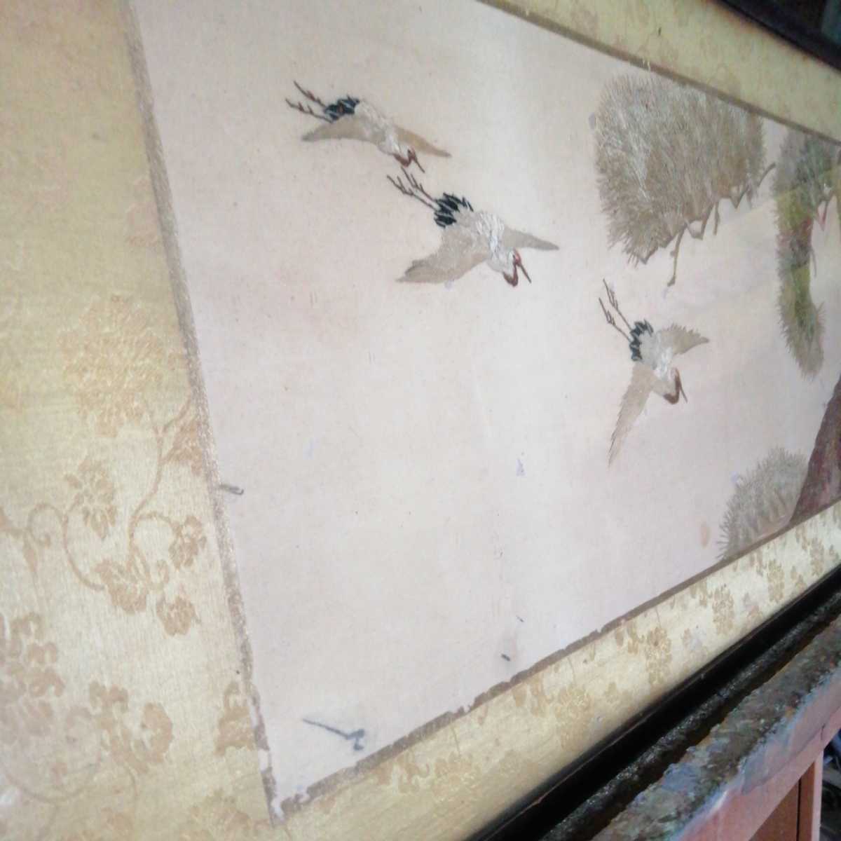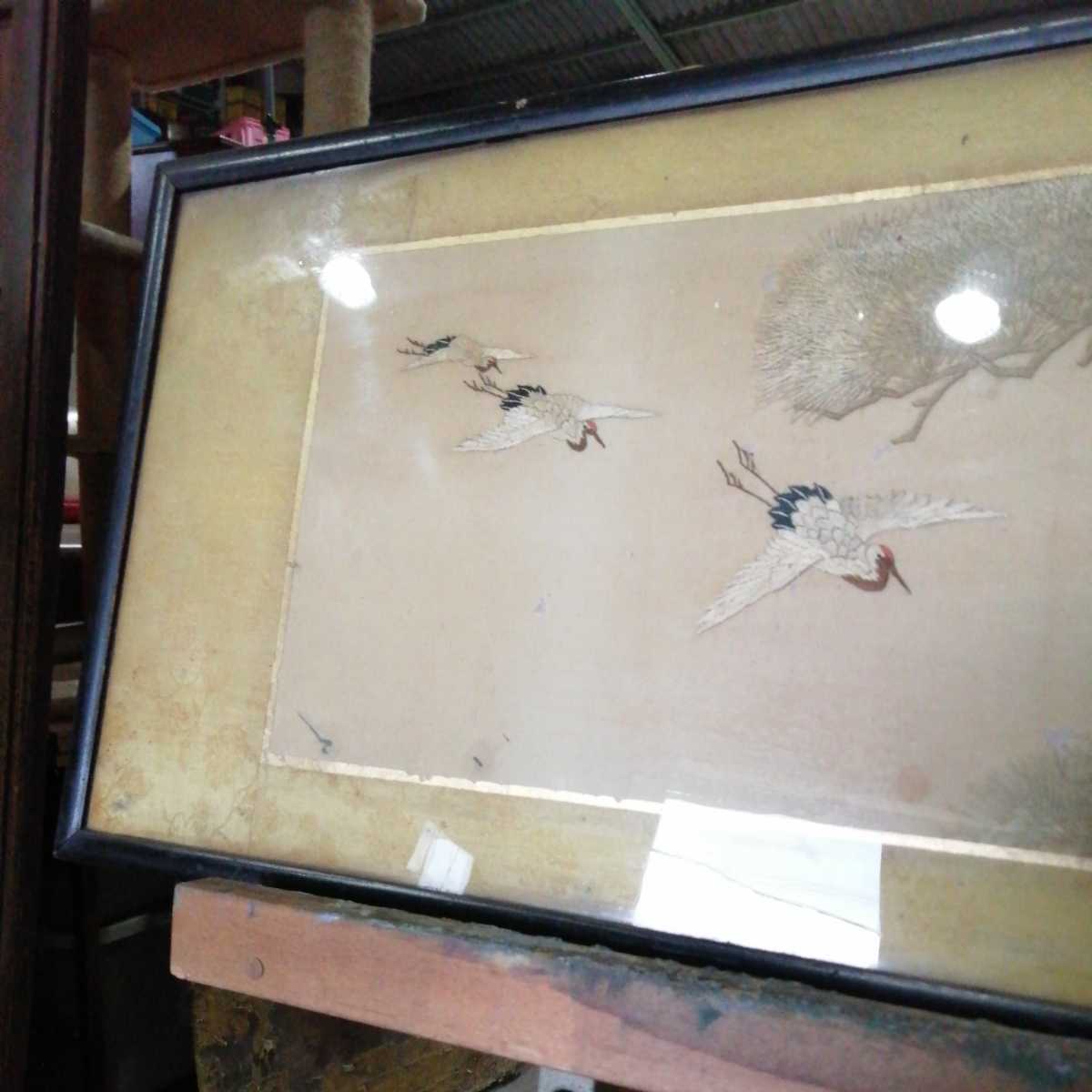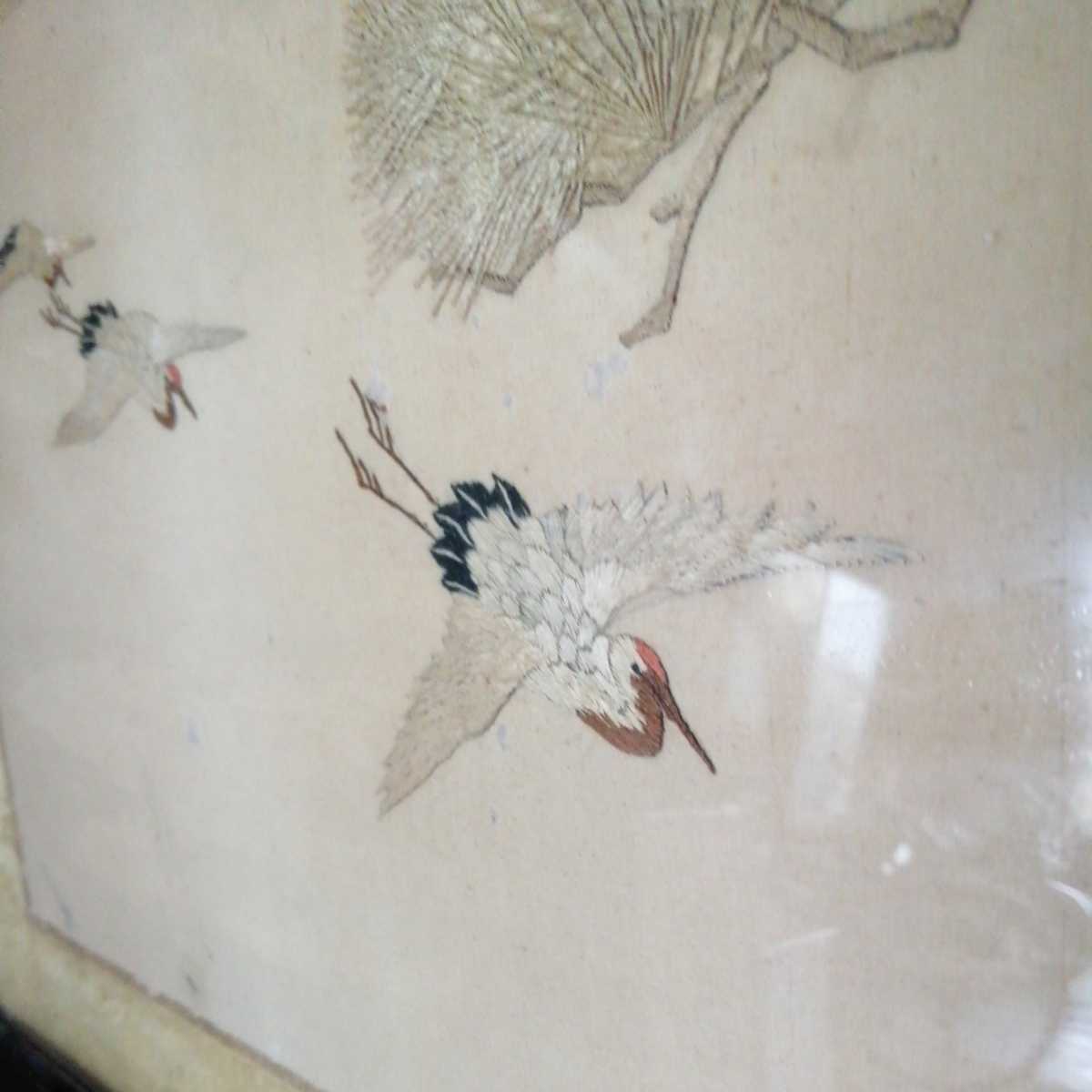 不佐 印 鶴 松 ツル 刺繍 縫い物 時代 古物 骨董