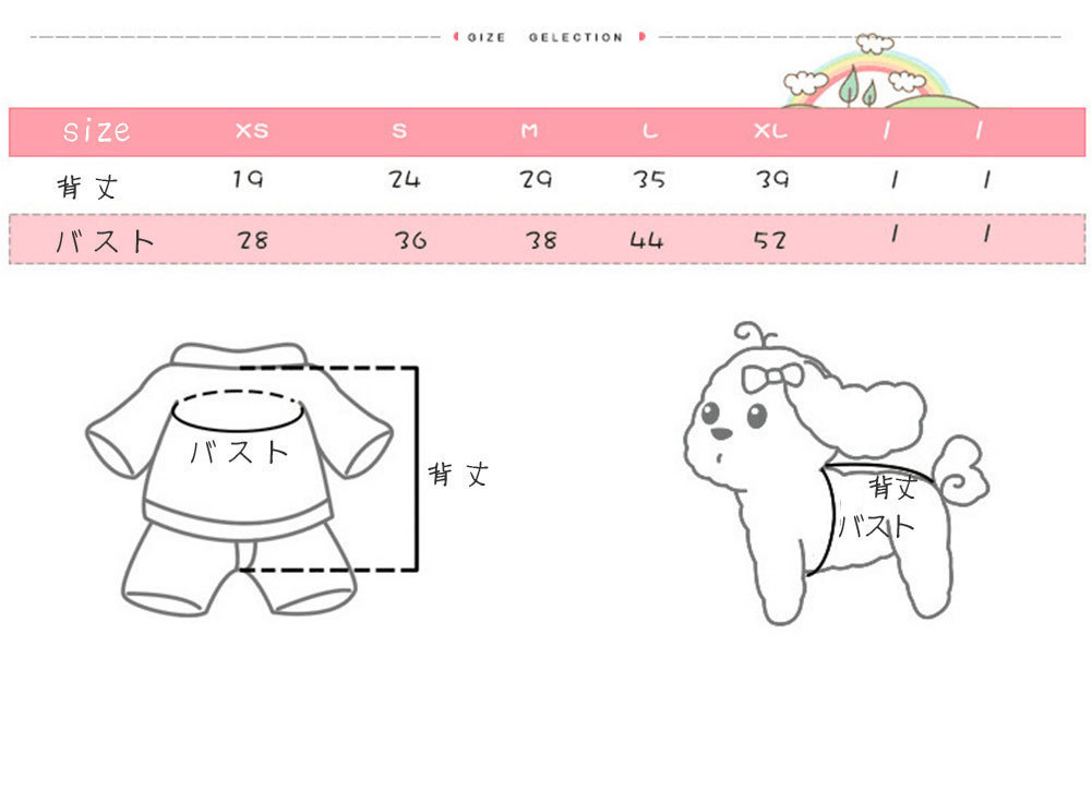 XS:背丈21CM 首周り20CM バスト27CM