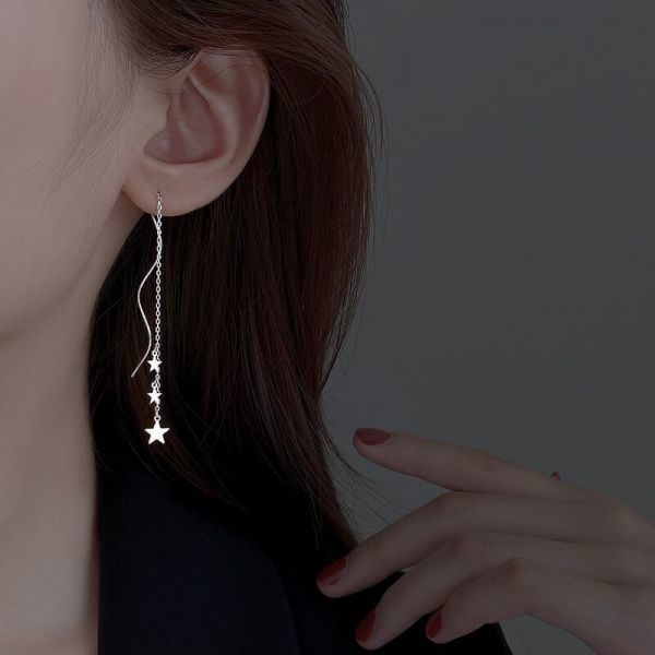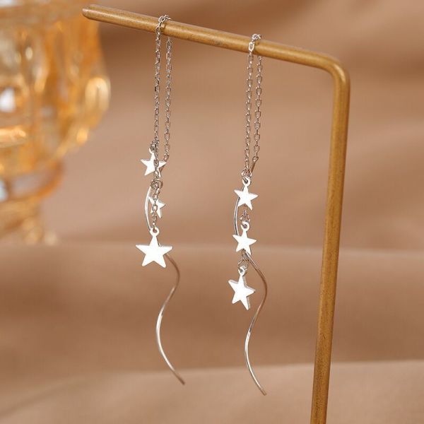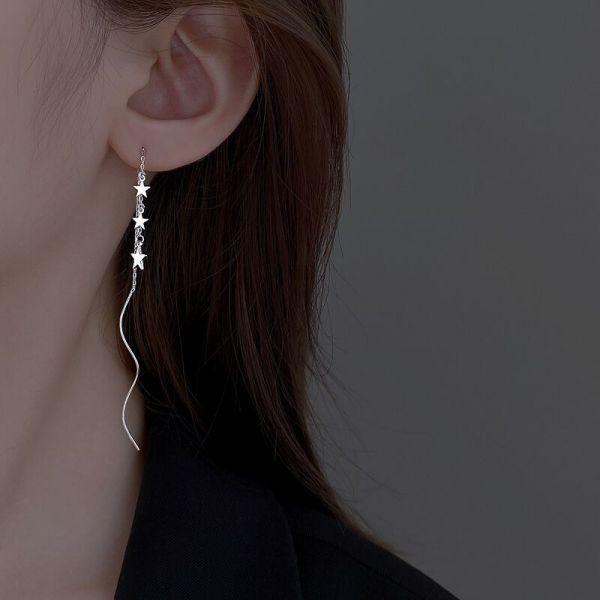 ピアス S925 星 タッセル 波浪 スター レディース 冷淡 風 風格 ロング 仙女 #C925-3