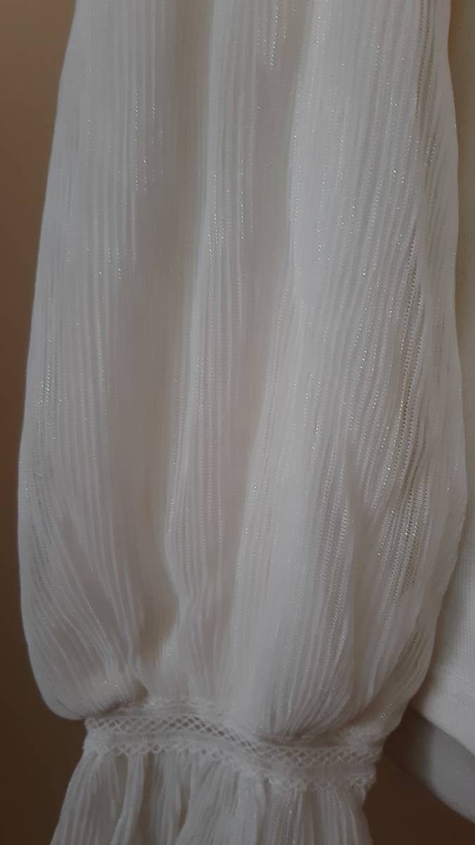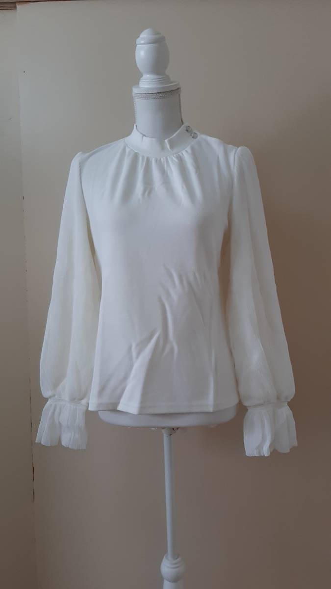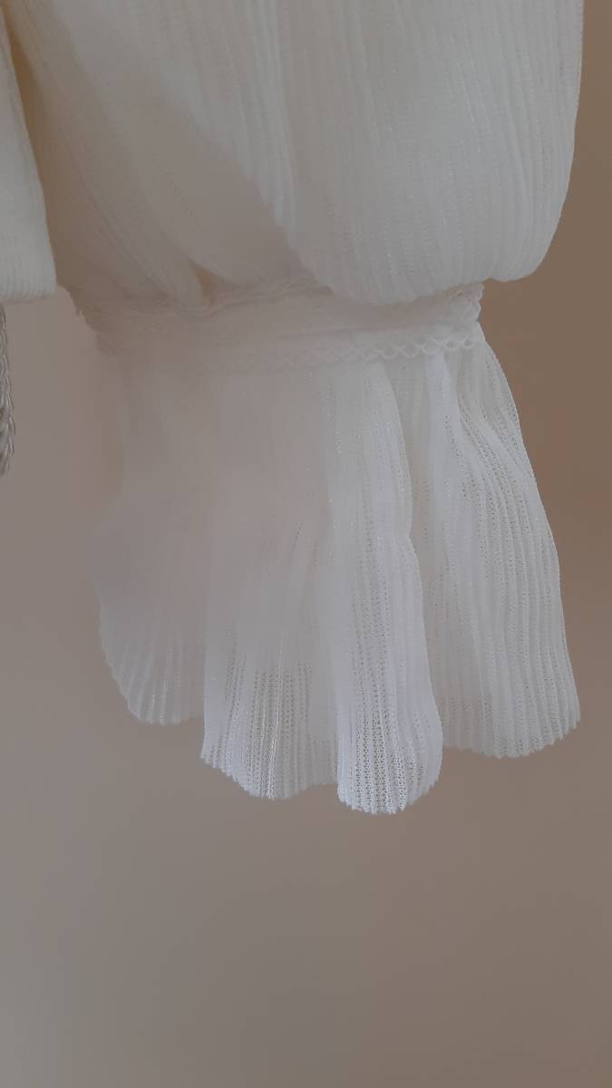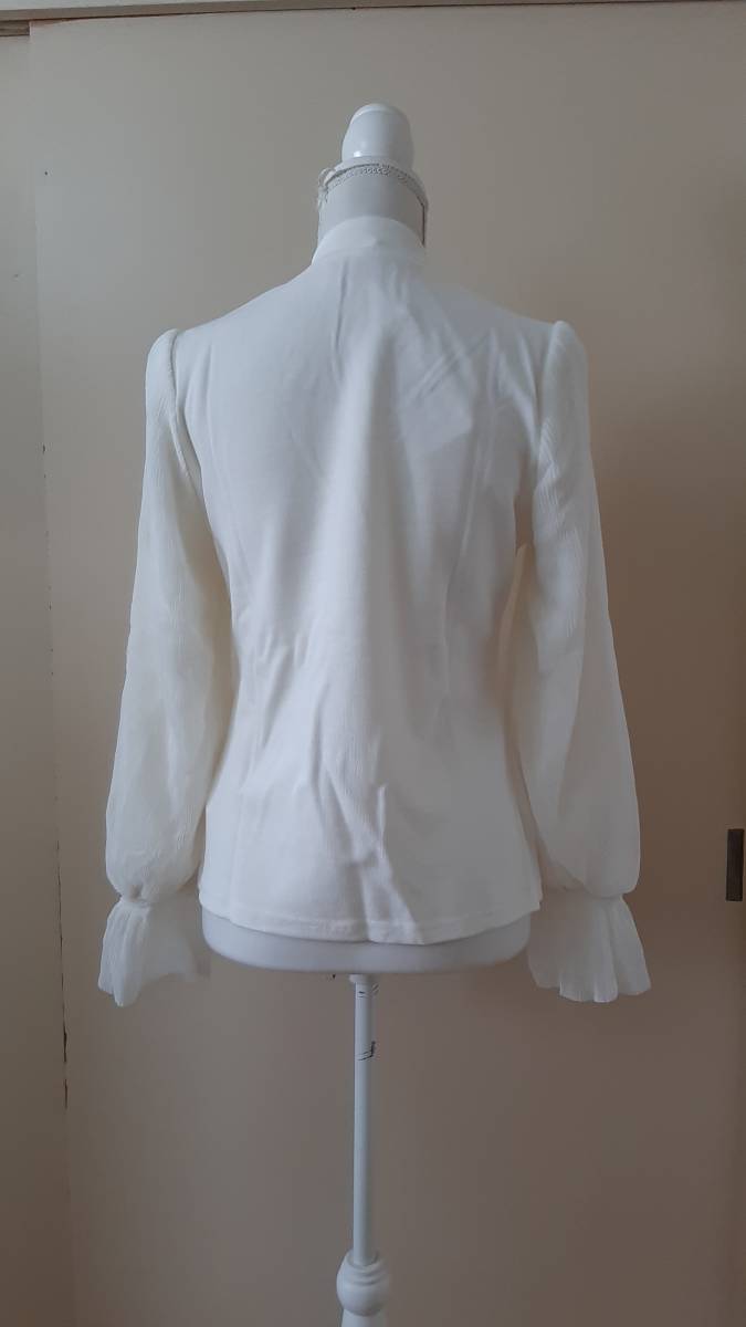 No.1771_七七之縁_未使用タグ付白ふっくらプリーツ袖伸縮温かカットソー