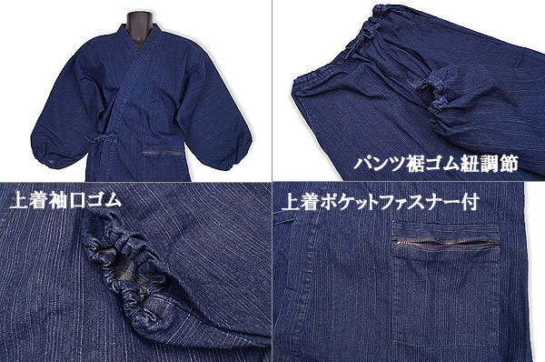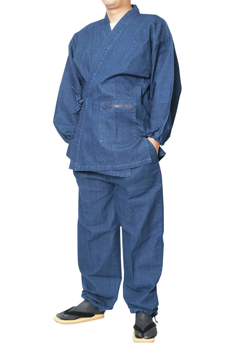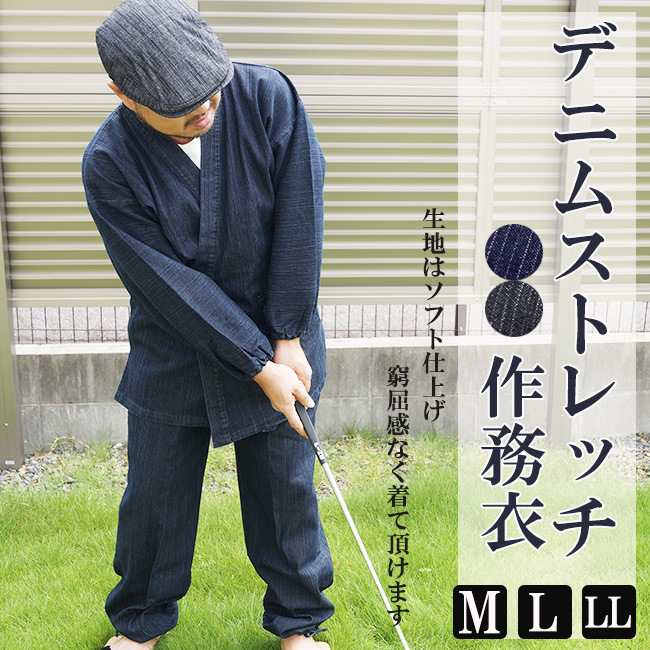 【ひめか】作務衣 メンズ デニムストレッチ作務衣 さむえ 紺L