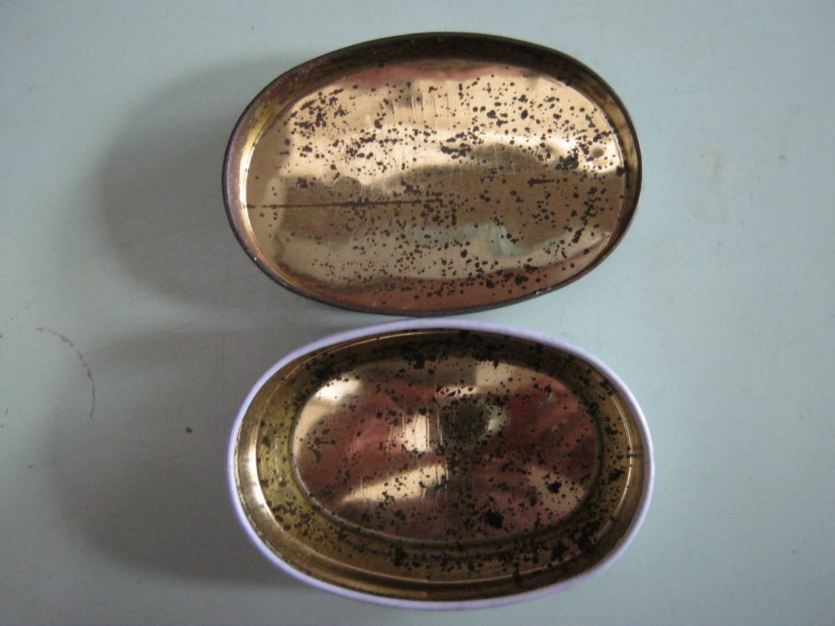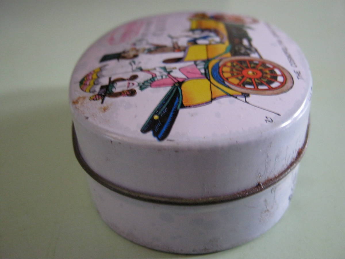 キャンディ(ドロップ)空き缶のみです。本体に汚れ、キズ、スレ、色ハゲ、凹み、錆があります。サイズは約5.9㎝×8.7㎝×3㎝位です。記載しているサイズは素人採寸の参考サイズです。以上判るだけ書きましたが写真、質問等で判断お願い致します。落札後はノークレーム、ノーリターンお願い致します。発送は日本郵便のレターパック プラス(¥600円・追跡番号付き、配達証付き です。)にての発送です。落札金額+¥600円です。レターパック プラスには品物に保険がついておりません。紛失、破損の場合 当方は補償の対応できません。保険付き希望の場合 ゆうパックにて発送します。発送方法は以上の方法でしか対応できませんのでご理解の上 入札お願い致します。