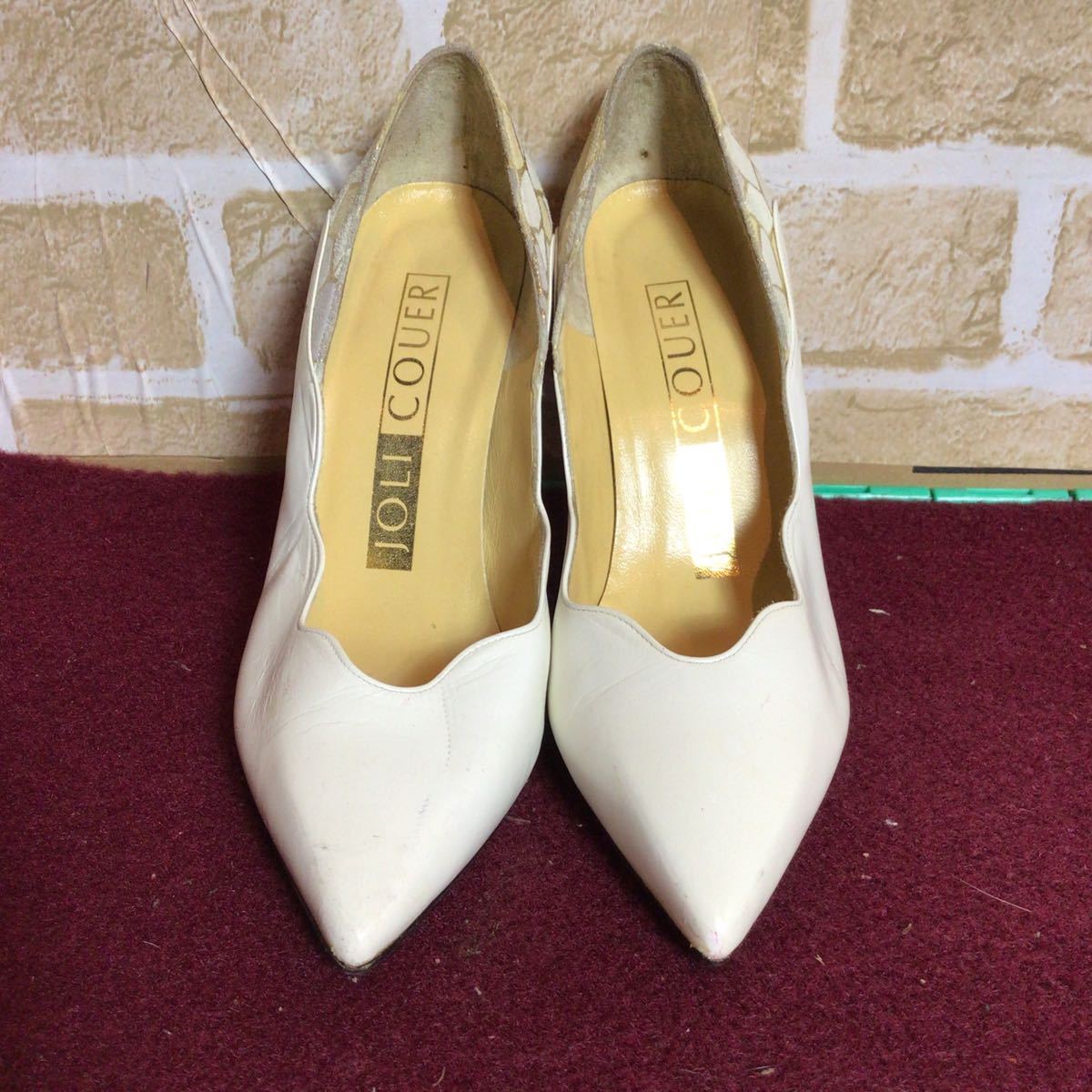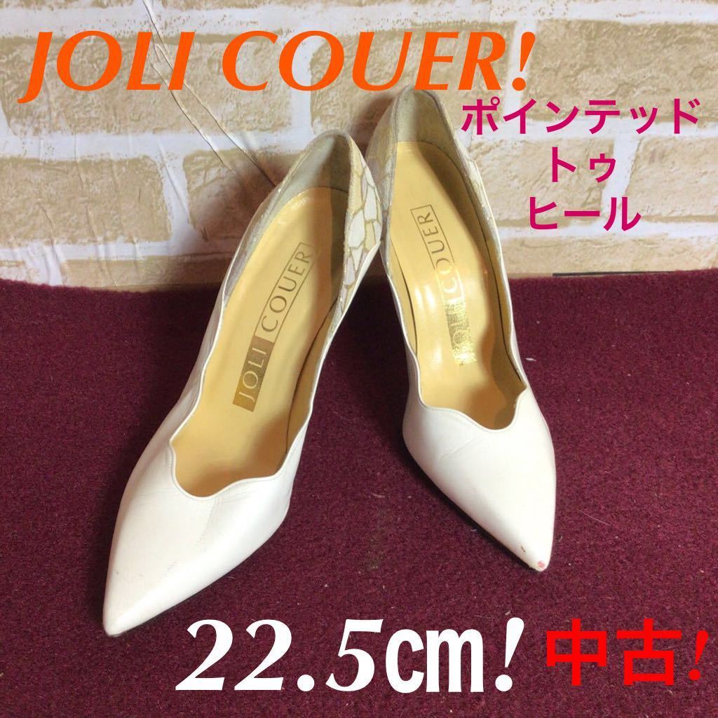 【売り切り!送料無料!】A-156 JOLI COUER! ジョリクール! ポインテッドトゥ ヒール! ヒール10㎝! パンプス! サイズ22.5㎝! ホワイト系! 中古!
