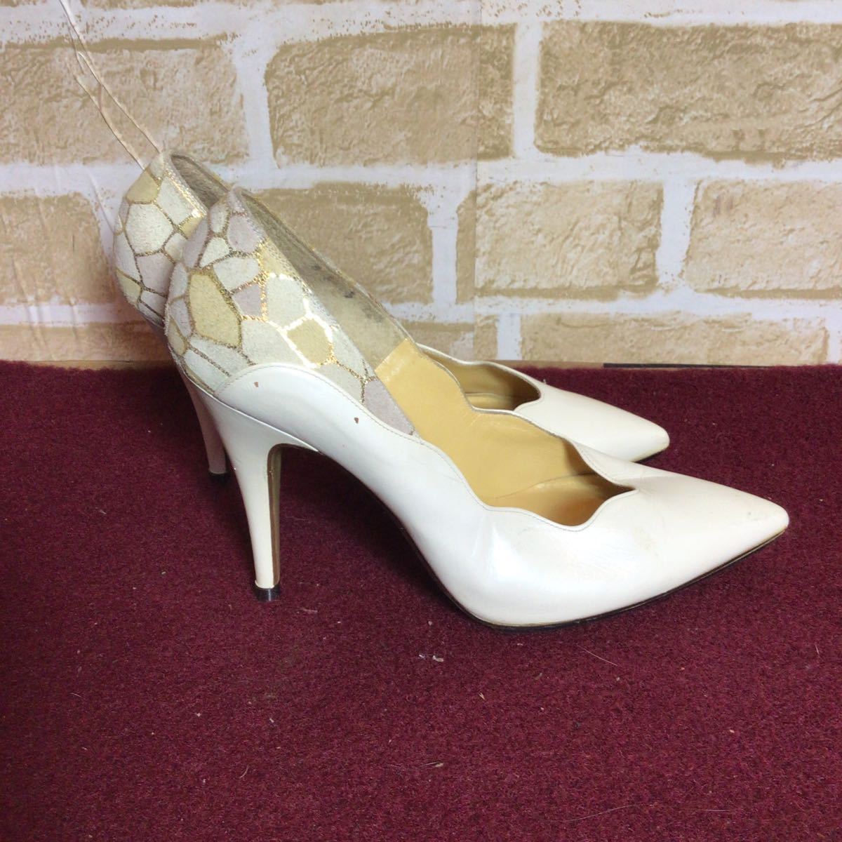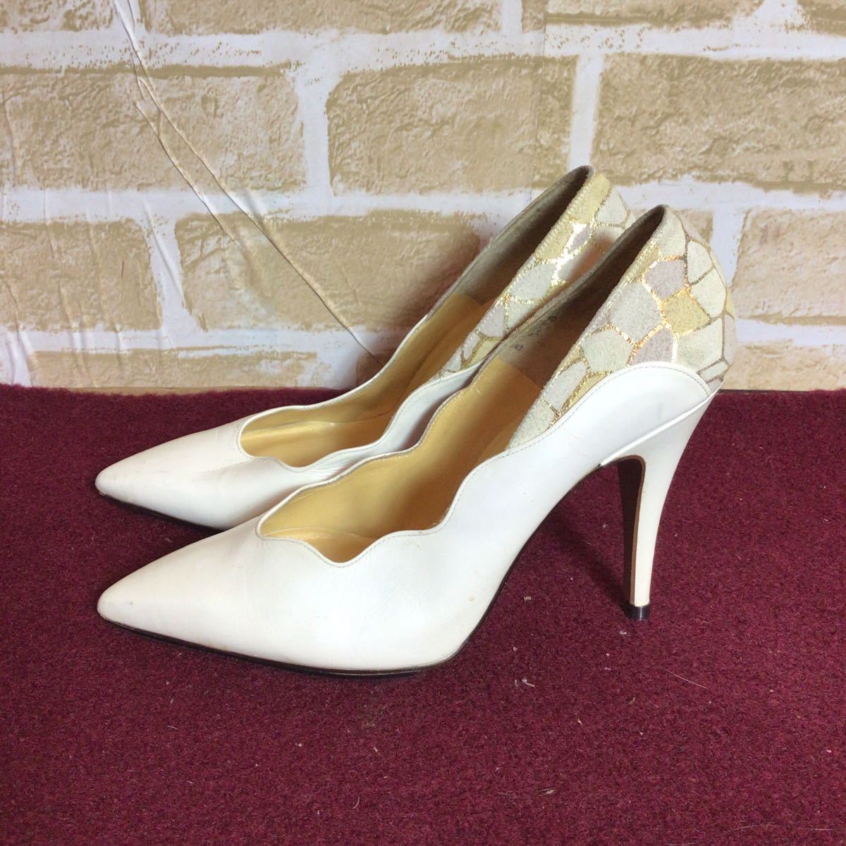【売り切り!送料無料!】A-156 JOLI COUER! ジョリクール! ポインテッドトゥ ヒール! ヒール10㎝! パンプス! サイズ22.5㎝! ホワイト系! 中古!