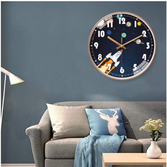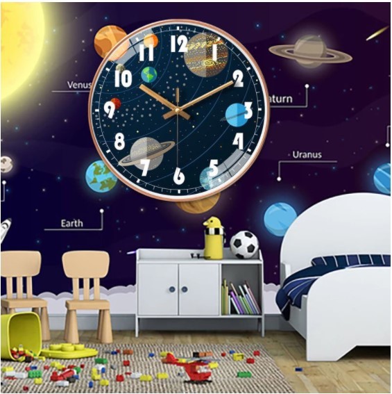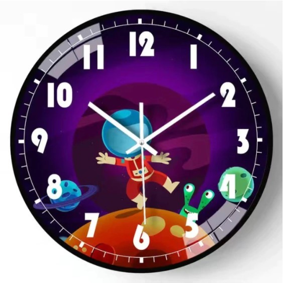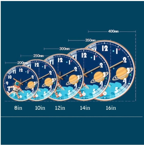 壁時計 宇宙デザイン イラスト 子供部屋 寝室【12インチ 16~20】