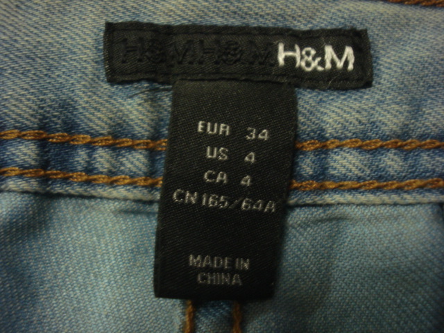 格安ガーリー・H&M(エイチアンドエム)・ダメージ加工(ブリーチ加工)系デニム風地・SKINNY FIT~スリムテーパード系ジーンズ EUR34 W74cm位になります。