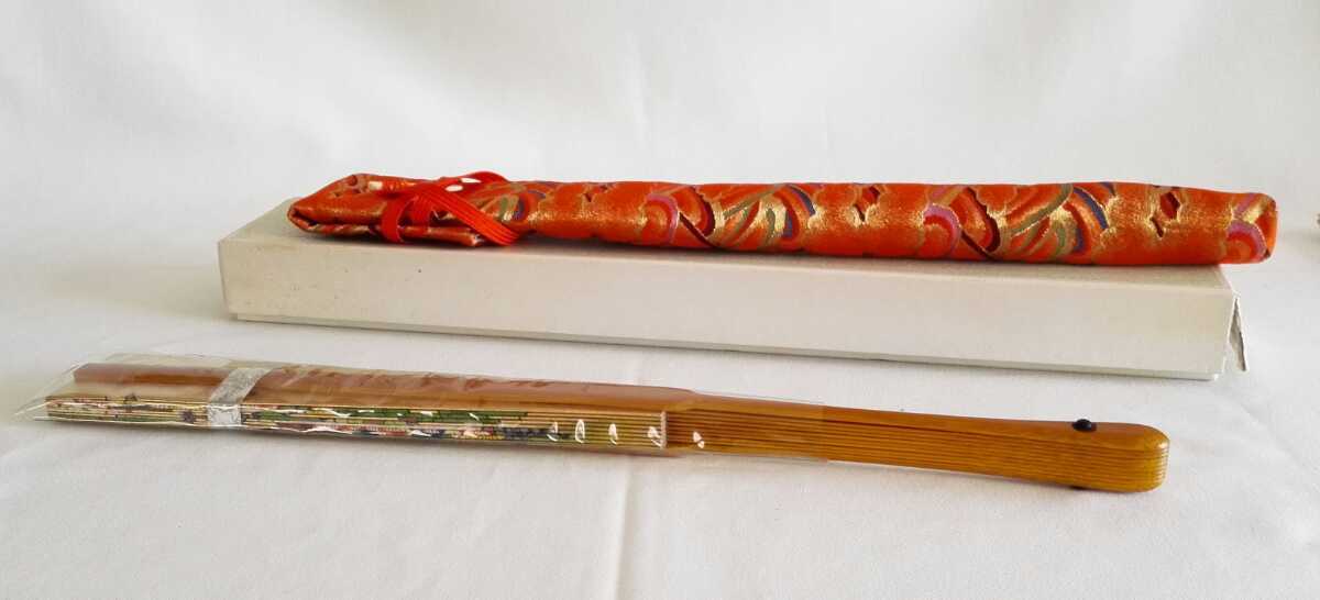 [未使用]舞踊扇 能扇 京都 十松屋 金に鳳凰 美品 扇袋付  ★02P-822