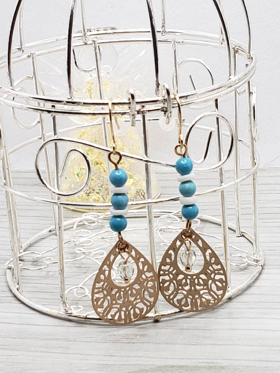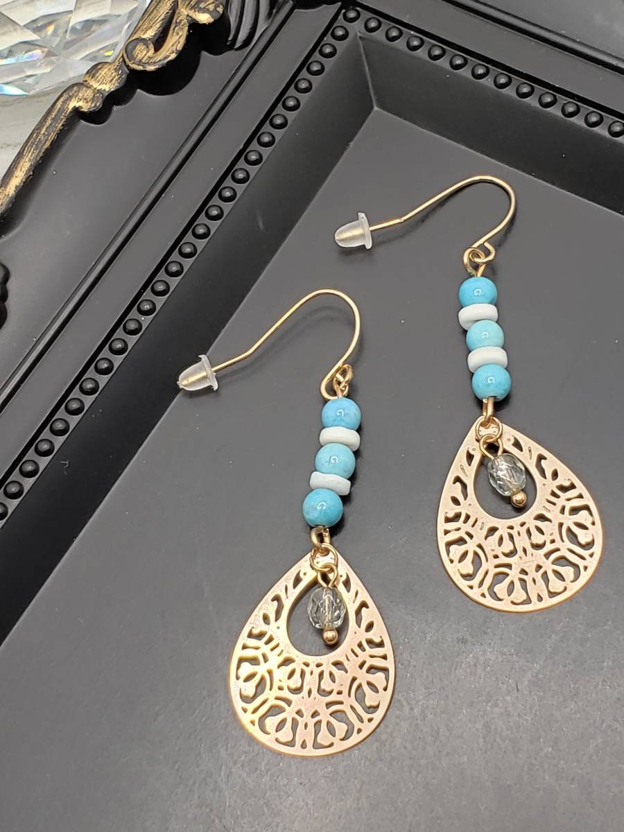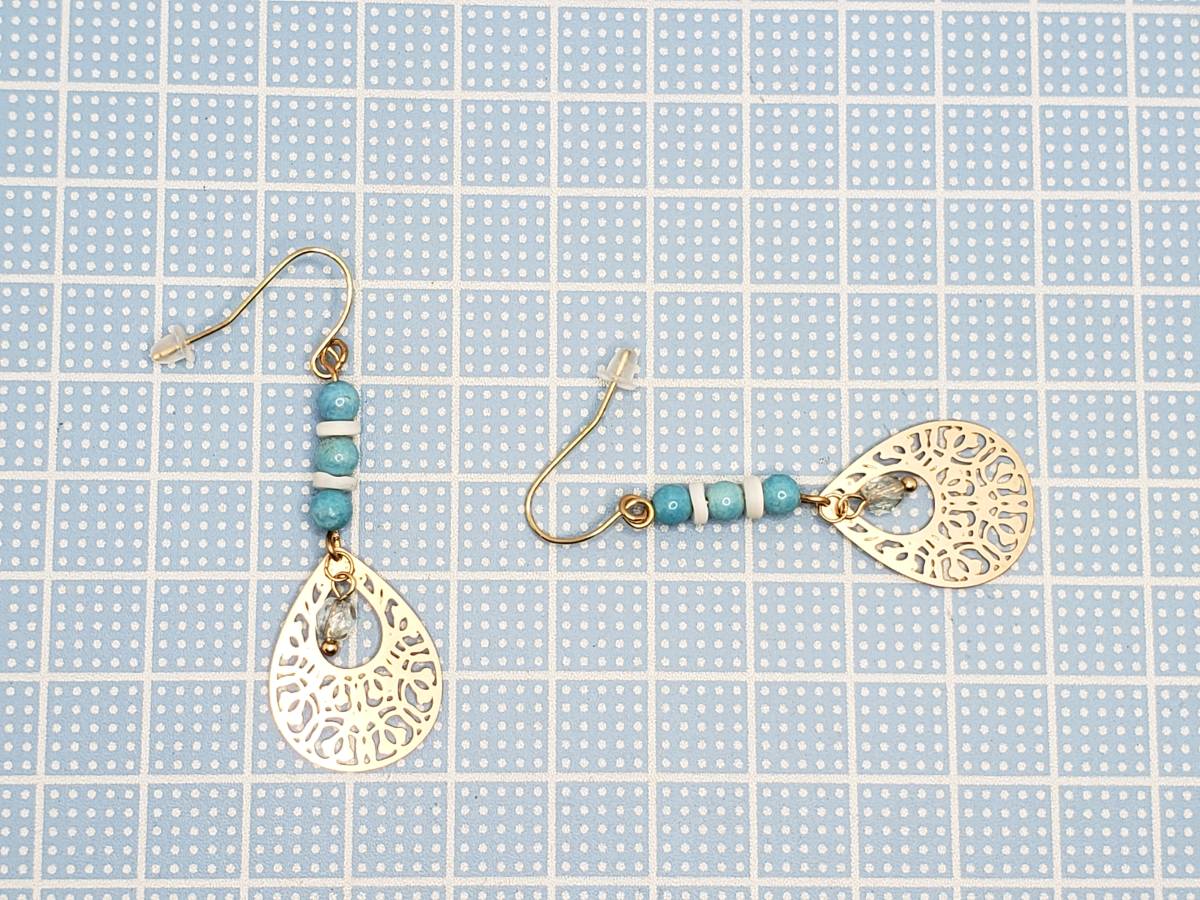 ★ハンドメイド イヤリングorピアス 857 樹脂フック・バネ(クリップ)式イヤリング金具など変更無料 ターコイズ 透かし★