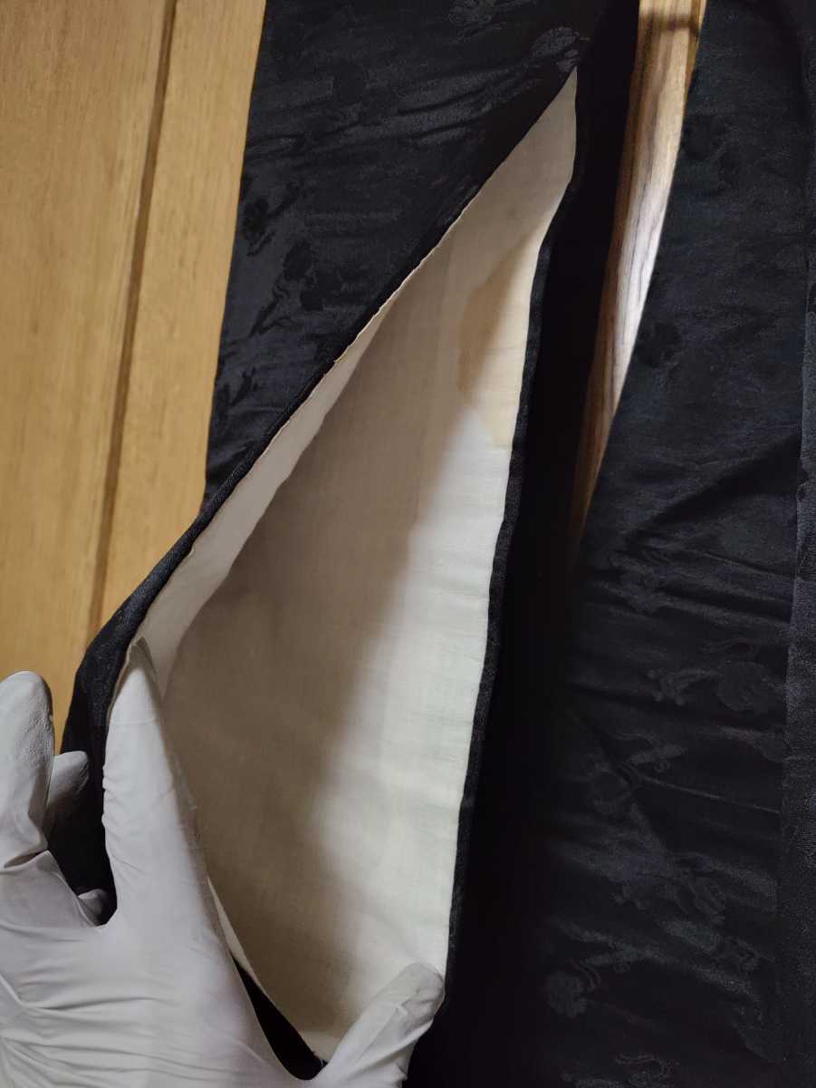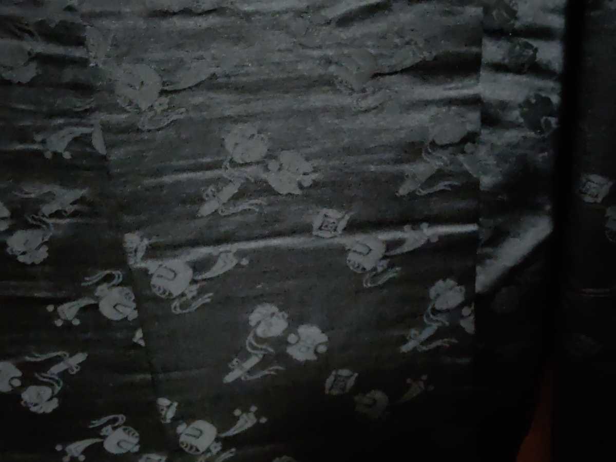☆送付内容☆ 中古 昭和 レトロ 当時物 帯 黒 柄 木槌 袋 巻物 black obi belt for kimono 約337cm x 約31cm シック 古布 リメイク ☆メモ☆ 長期保管品です。帯は約190cm半分に折って縫われています。半分に折っている中に約37cm間口があります。画像で白布(シミあり)が見える箇所です。生地は絹のようですが、品質表示がな為不明とします。柄は見た目で書いていますが、間違っている可能性もあります。画像でご判断下さい。 | |