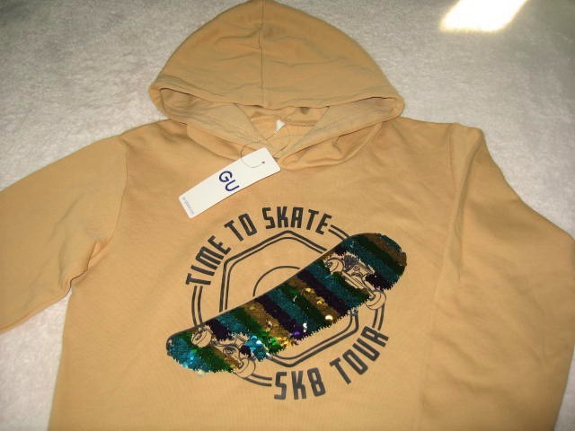 新品 スパンコールスェット プルパーカー スケートボード  ジーユー
