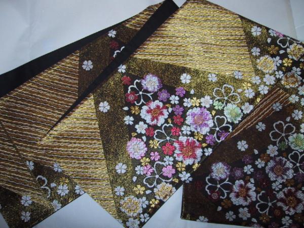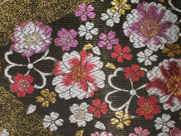 金+黒金地(裏地はくろ)かいきり(たれ先柄立ち上がり)~かいきりなし(手先柄はし)まで約442,0cmですので、出来上がり予想は約437cmです。巾30,8cm0785