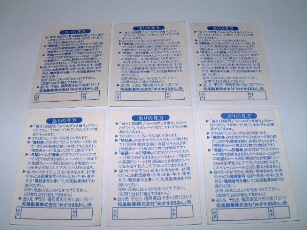 | ♪商品説明♪ | 松尾製菓のマイナーシール 「めざせまるきん」 6枚セットです。 状態は良いほうだと思います。 |