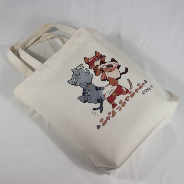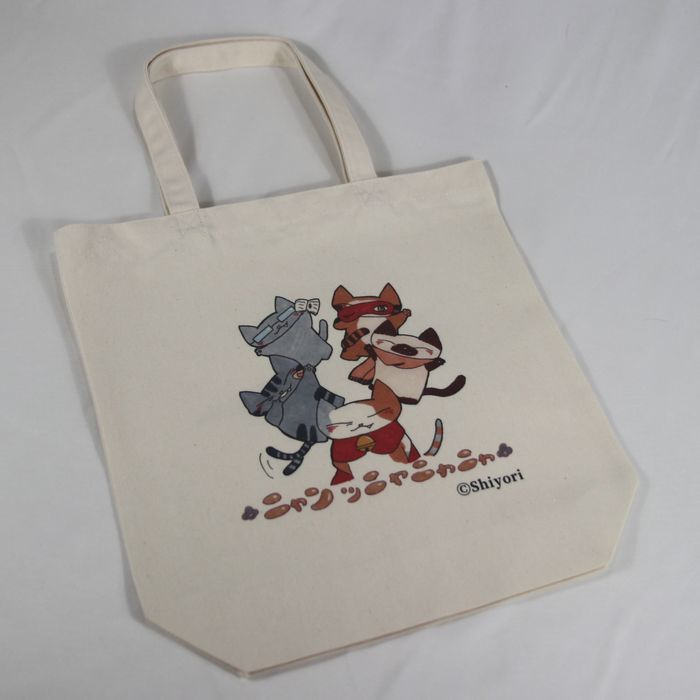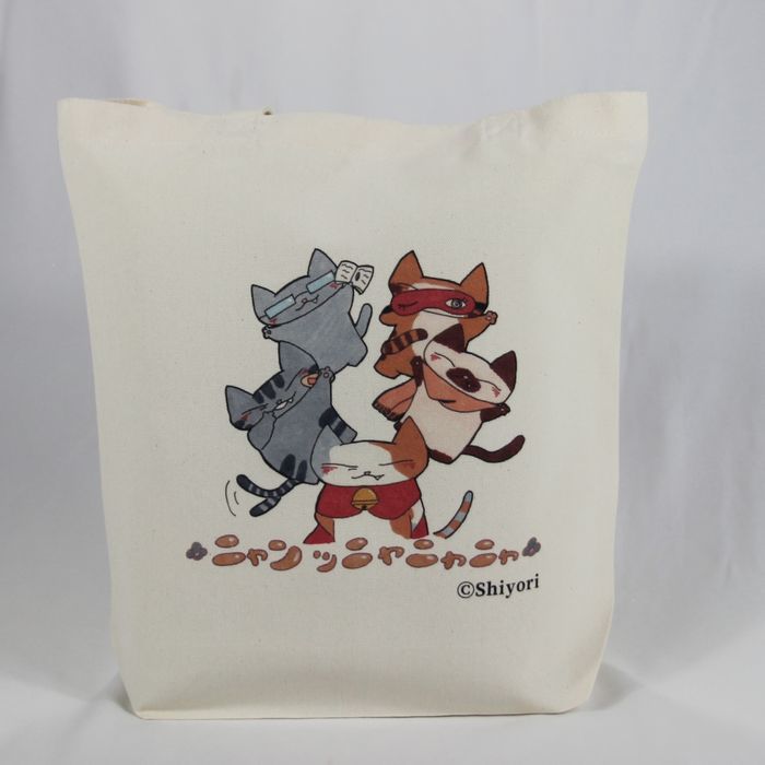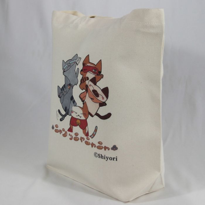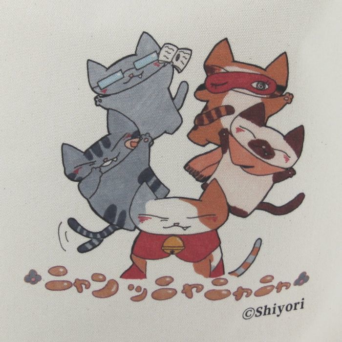 新進クリエイターShiyoriさんが描く猫の仲間たち「ニャンッニャニャニャ」を、トートバッグに仕上げました。