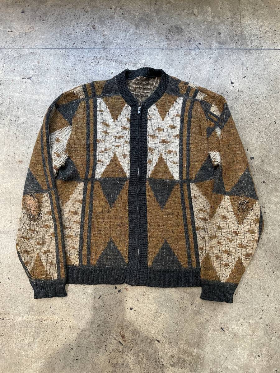 モヘア フルZIP カーディガン アーガイル 50S 60S 70S カーディガン グランジ カート(Lくらい)202T