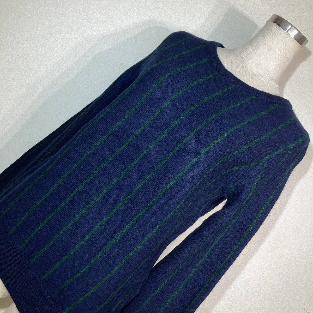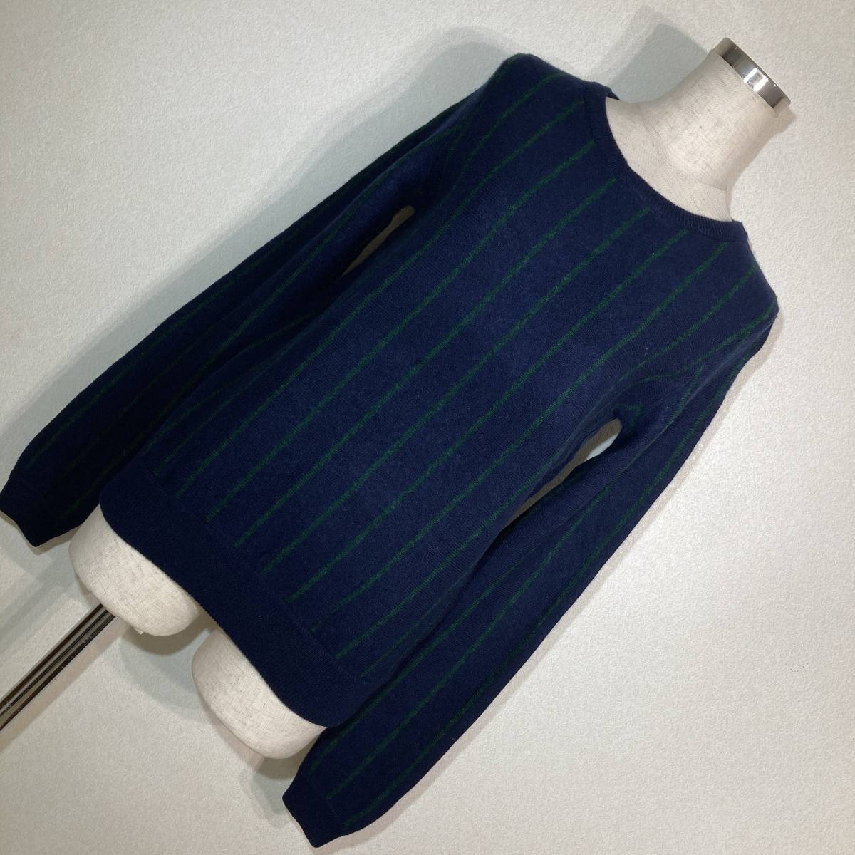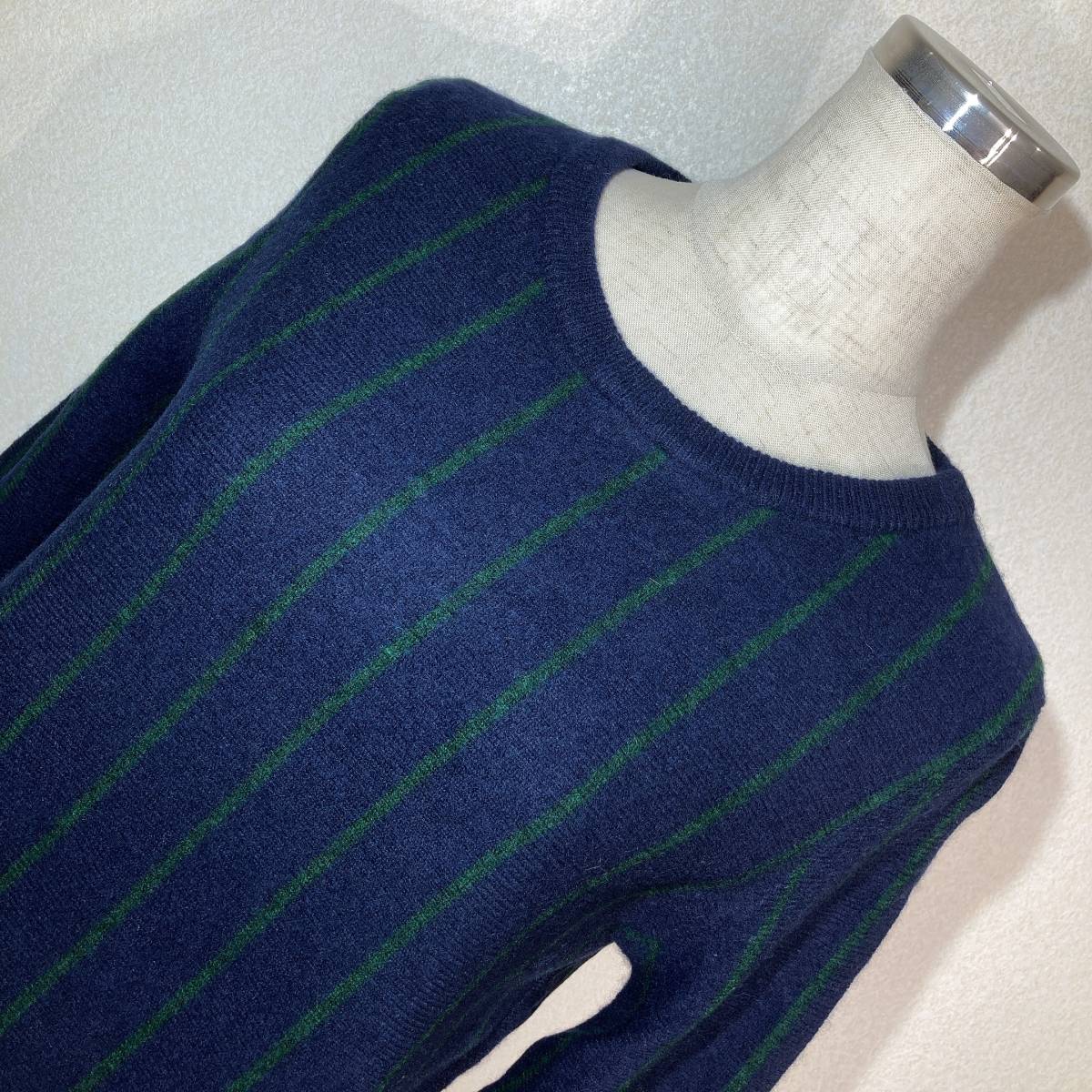 L989■Editionエディション★カシミヤ混/紺*緑ストライプ★セーター■3 | |||||||||||
