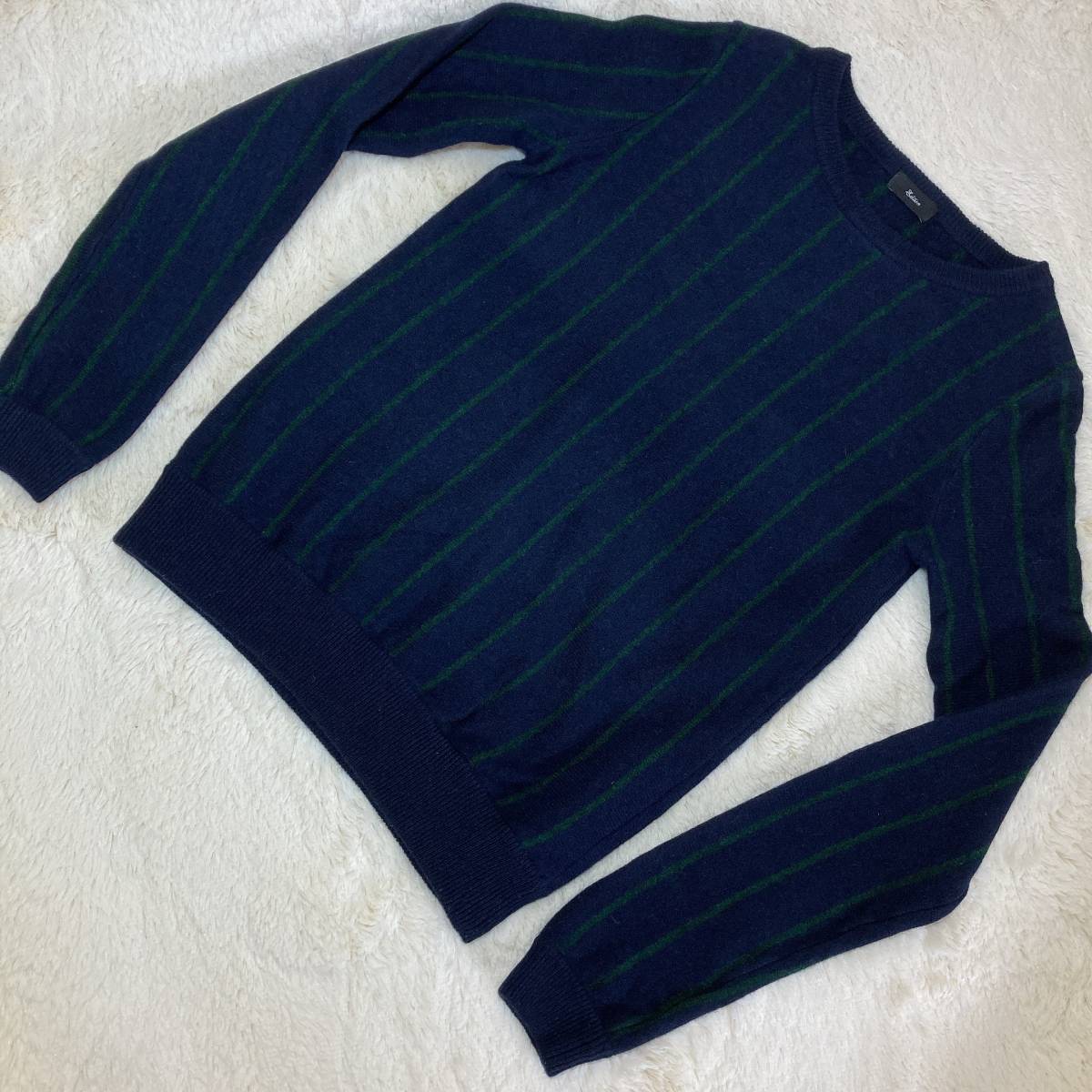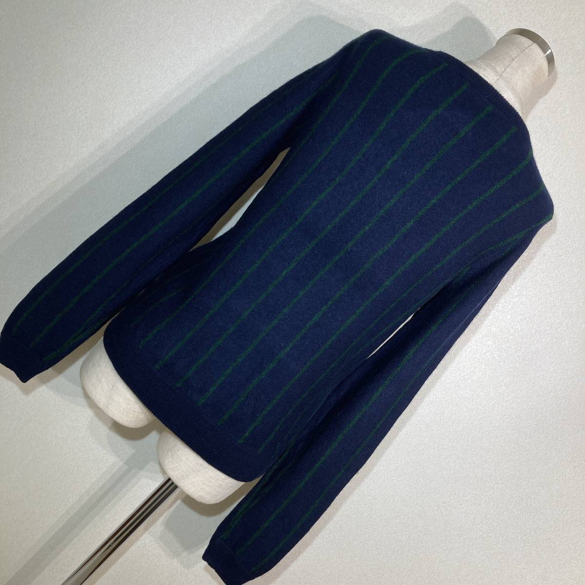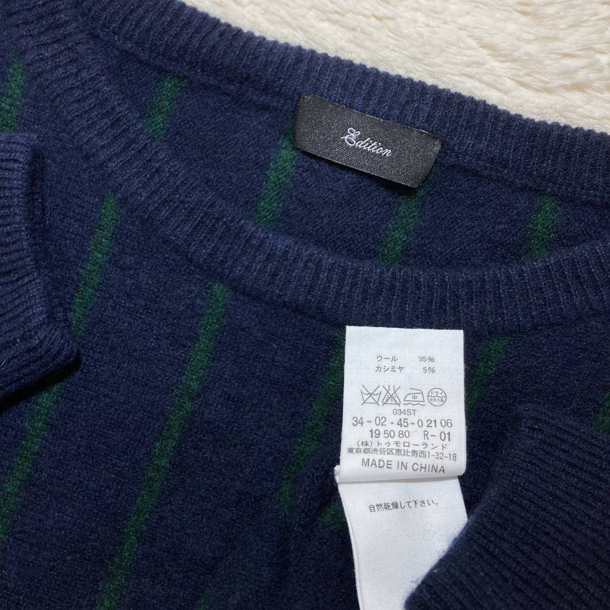 L989■Editionエディション★カシミヤ混/紺*緑ストライプ★セーター■3 | |||||||||||
